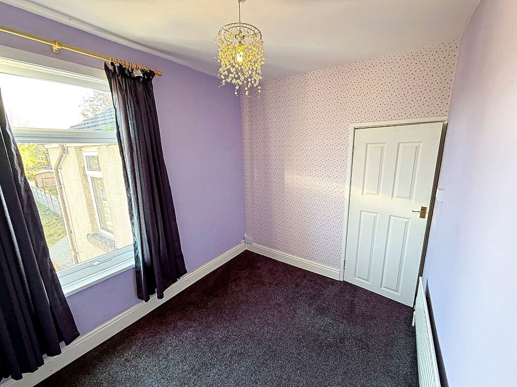 A further ample sized bedroom with carpeted flooring, radiator and a side facing upvc window.