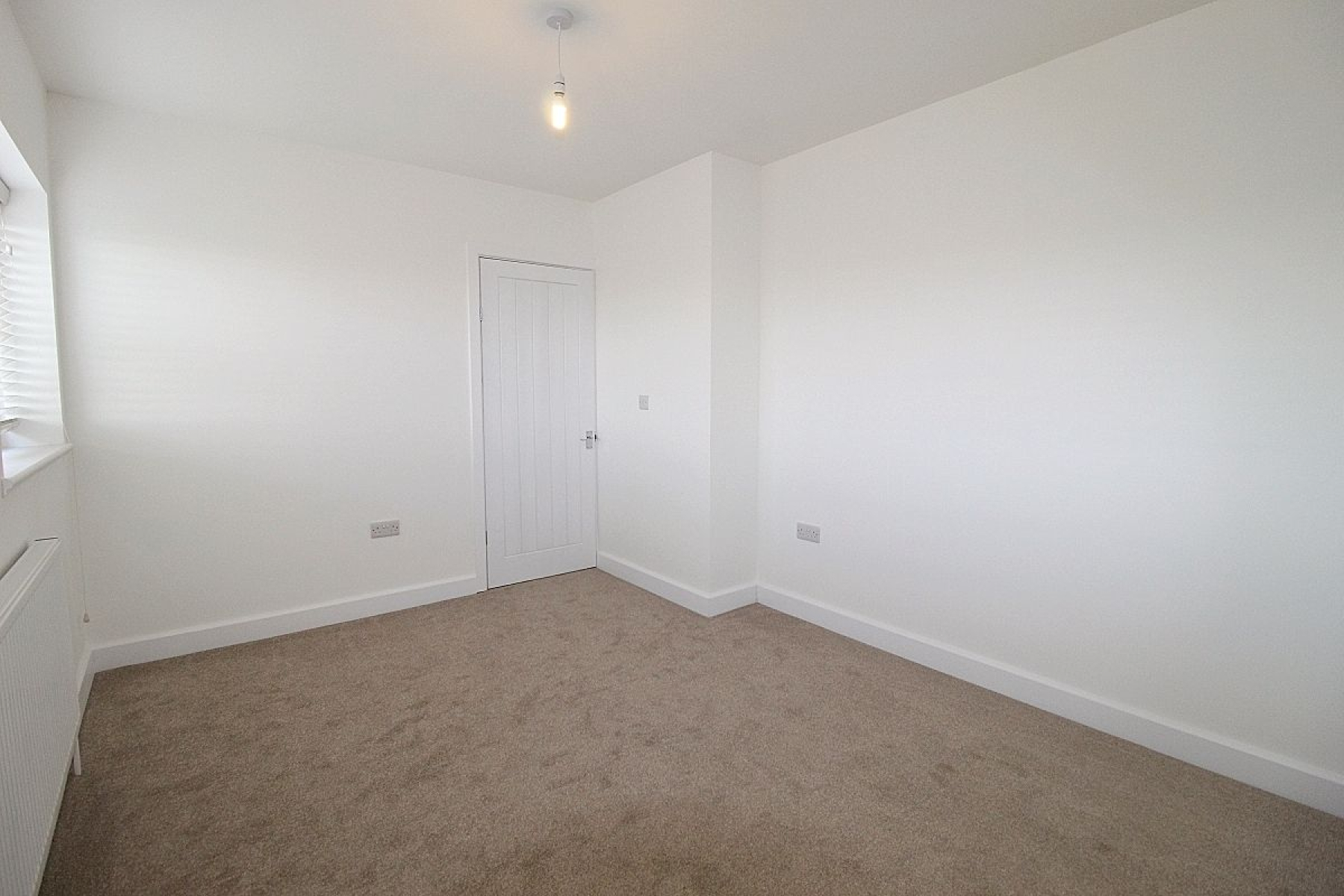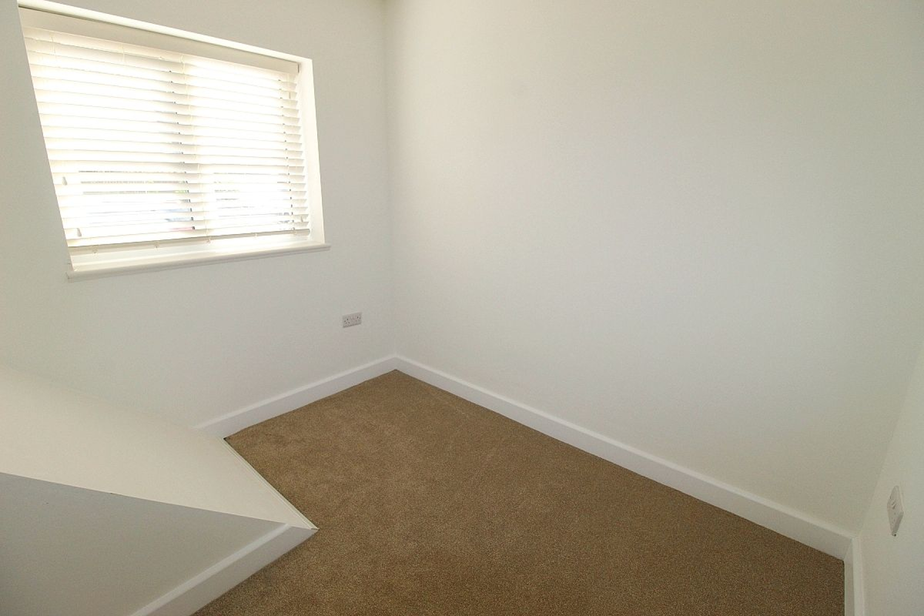 An ample sized third bedroom with carpeted flooring, radiator and a side facing upvc window.