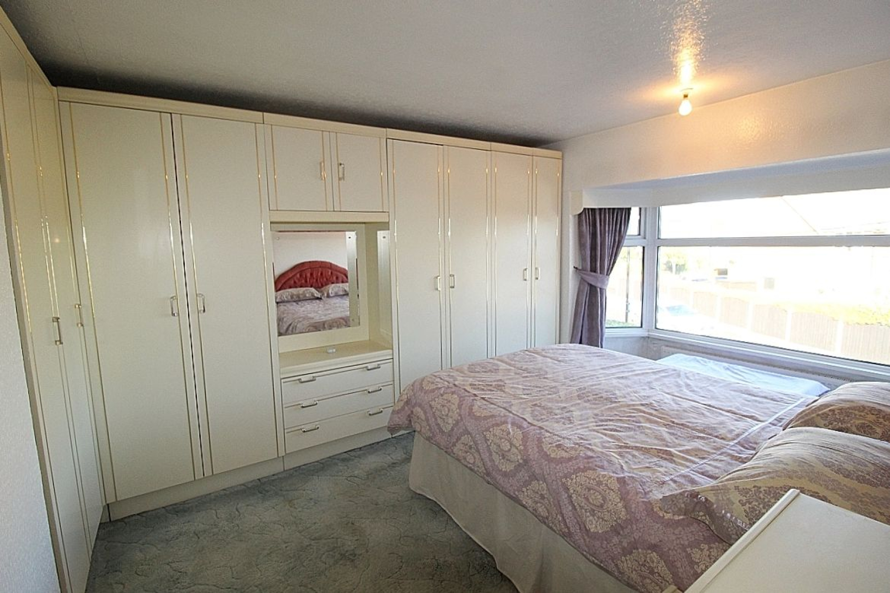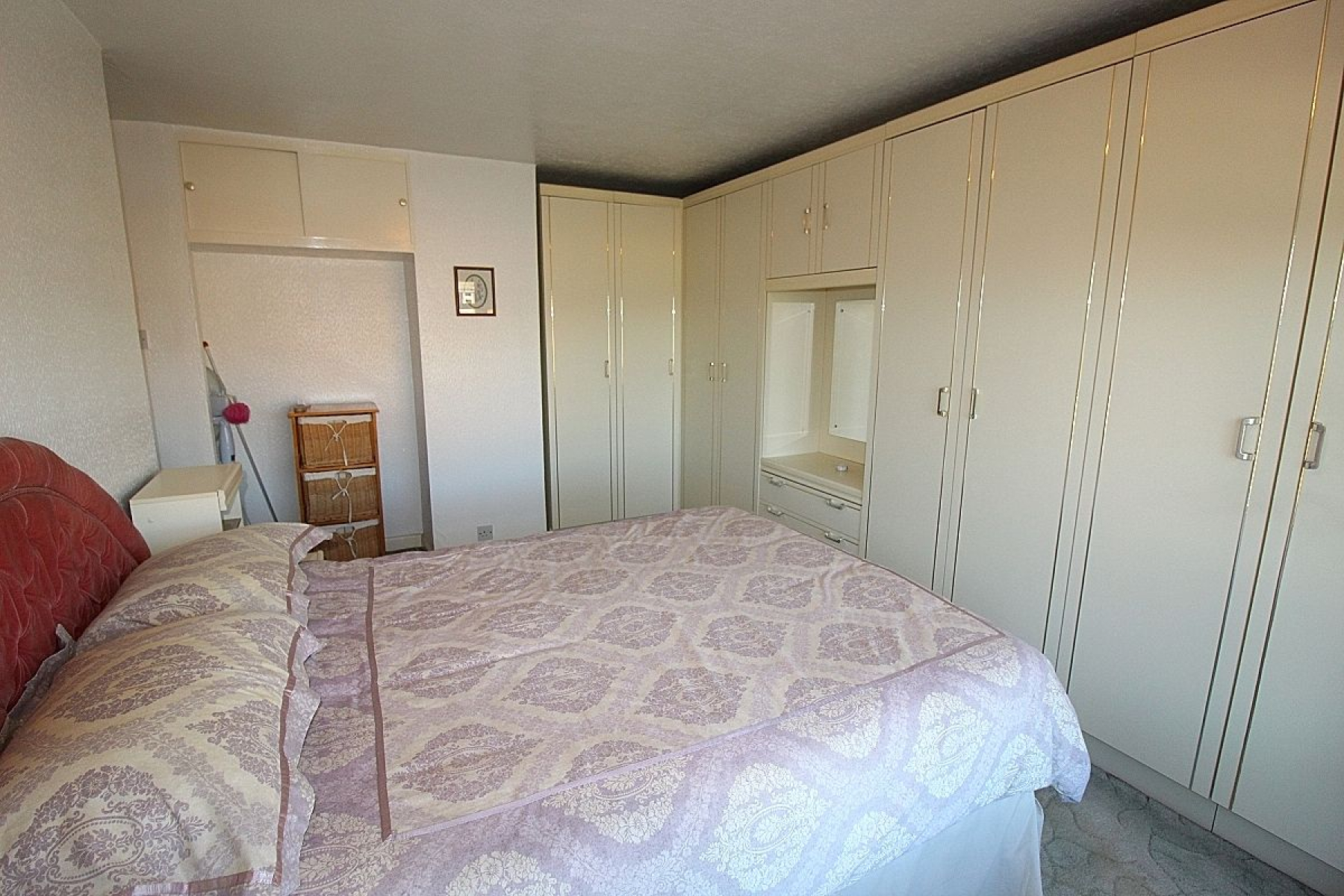 A further double bedroom with a range of fitted wardrobes, carpeted flooring, radiator and a rear facing upvc window.