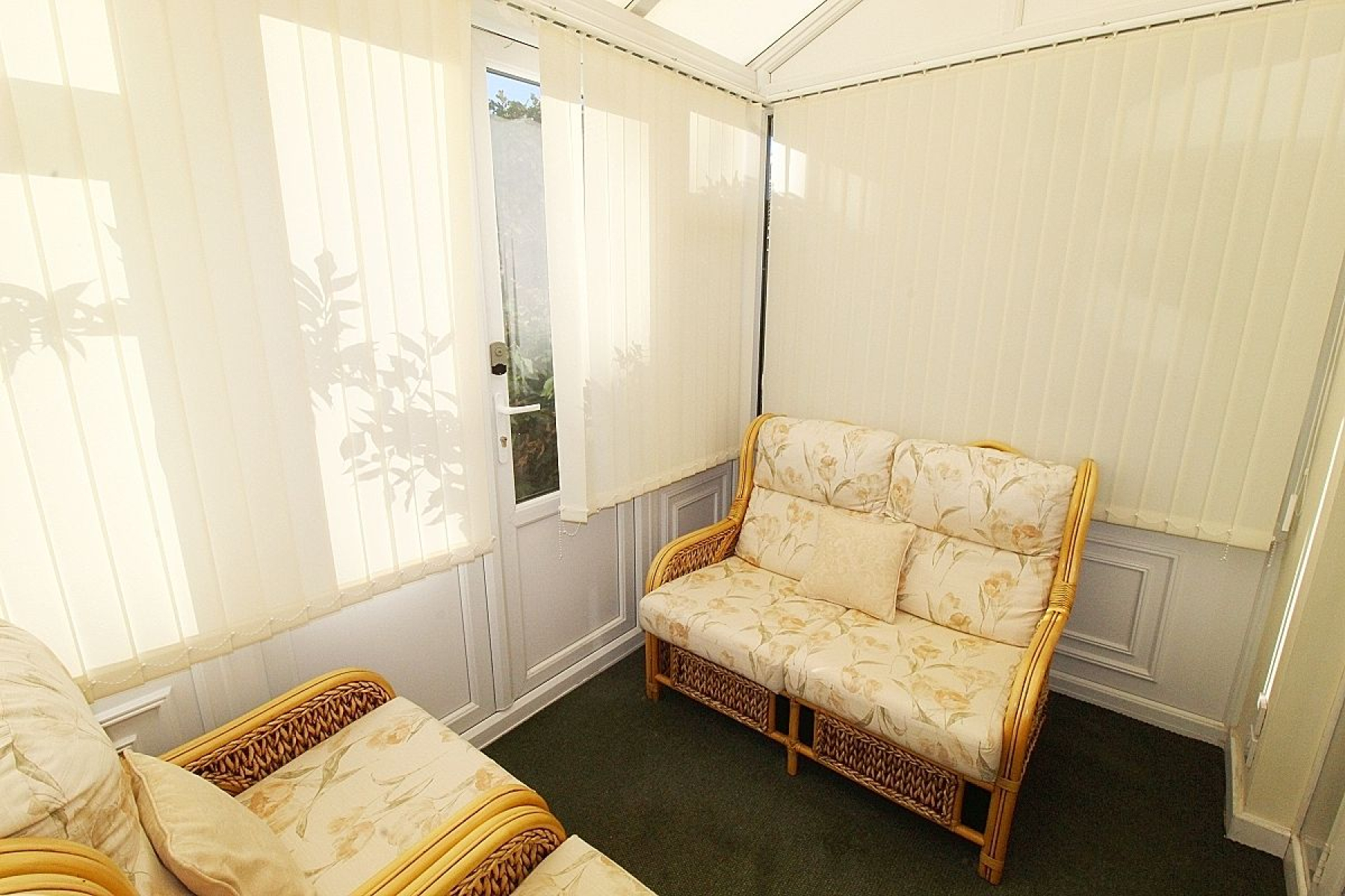 A further reception room with a continuation of the carpeted flooring, radiator, a glazed paneled door to the kitchen and glazed French doors with glazed side panels to the conservatory.