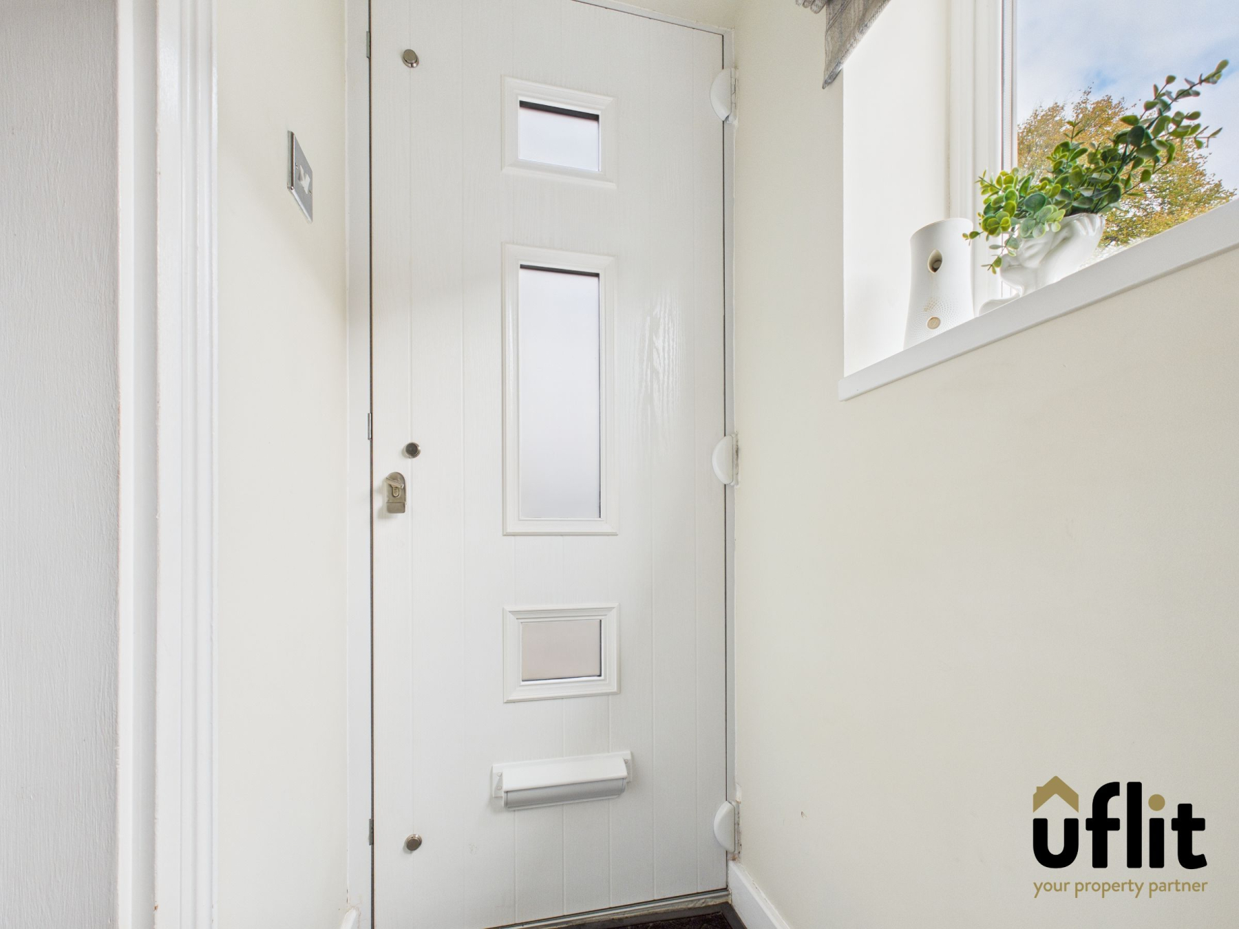 Step into a welcoming porch through a modern composite front door, with a front-facing double-glazed window, ceramic tiled flooring and radiator .