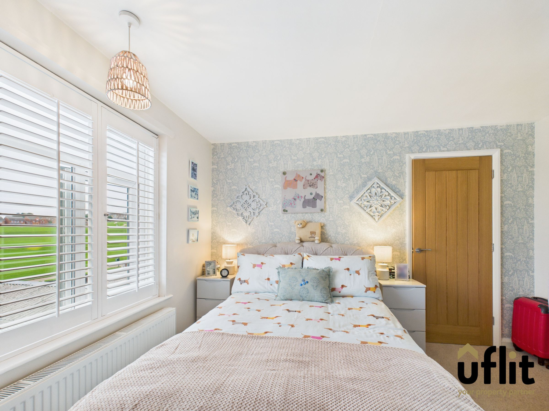 Located to the rear of the property, this generous double bedroom boasts stunning views overlooking the rear garden and fields beyond. Soft carpeting underfoot adds comfort, and a radiator provides warmth.