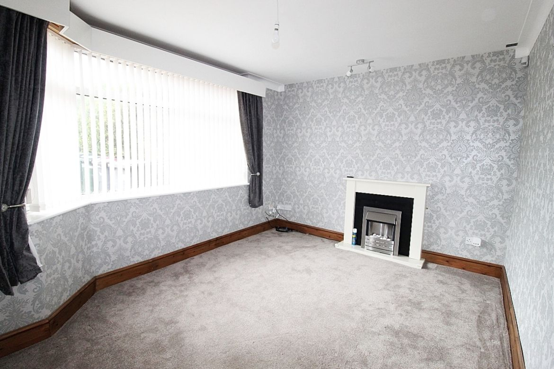 A spacious beautifully presented lounge with a focal feature fire, a radiator adds warmth, a front facing upvc bay window allowing an abundance of light to flow through and carpeted flooring.