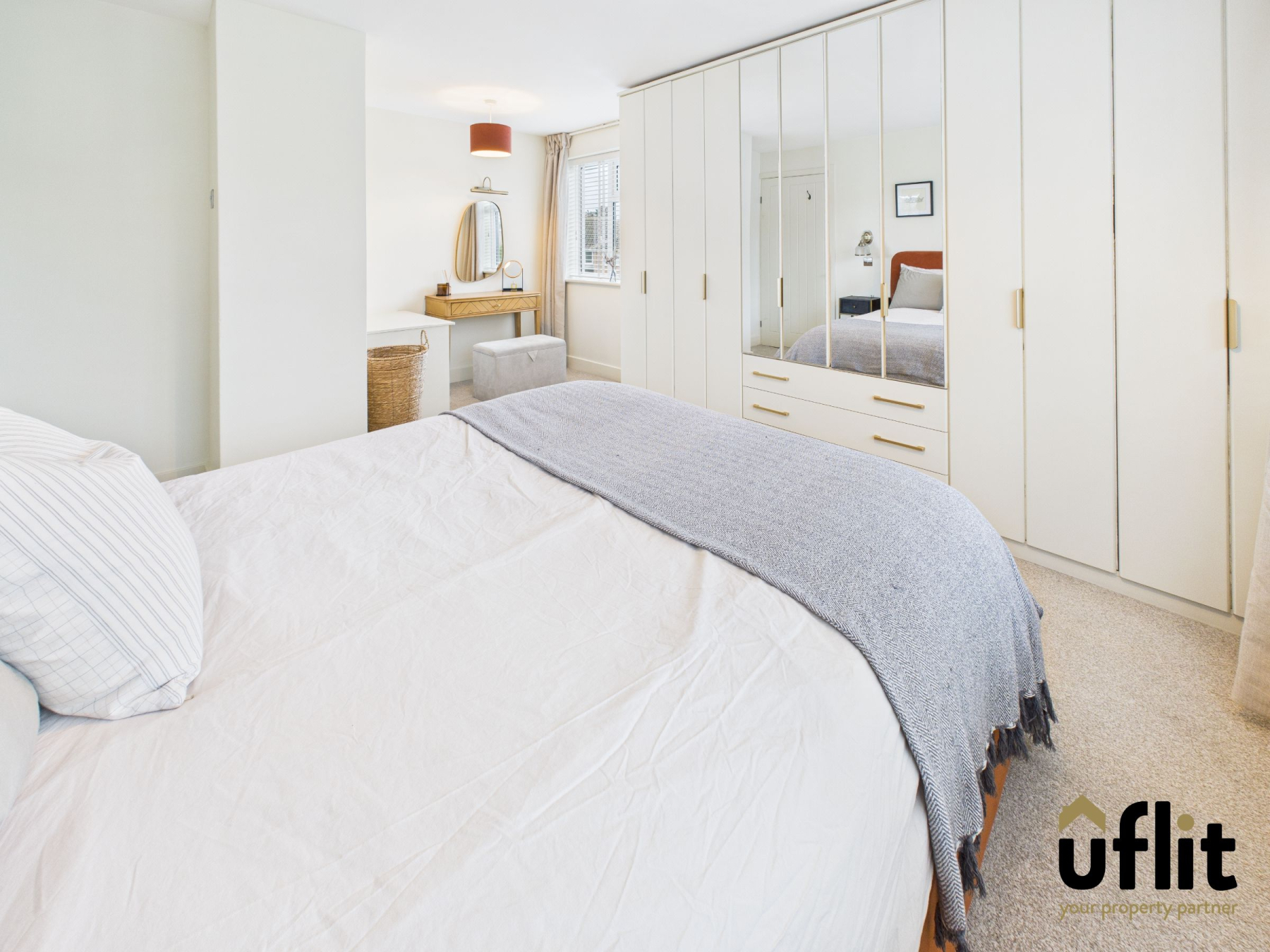 A generous double bedroom with carpeted flooring, radiator and both front and side-facing windows. Fitted storage cupboard and fitted wardrobes provide excellent storage.