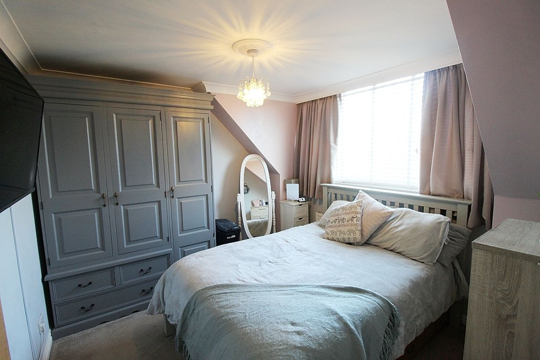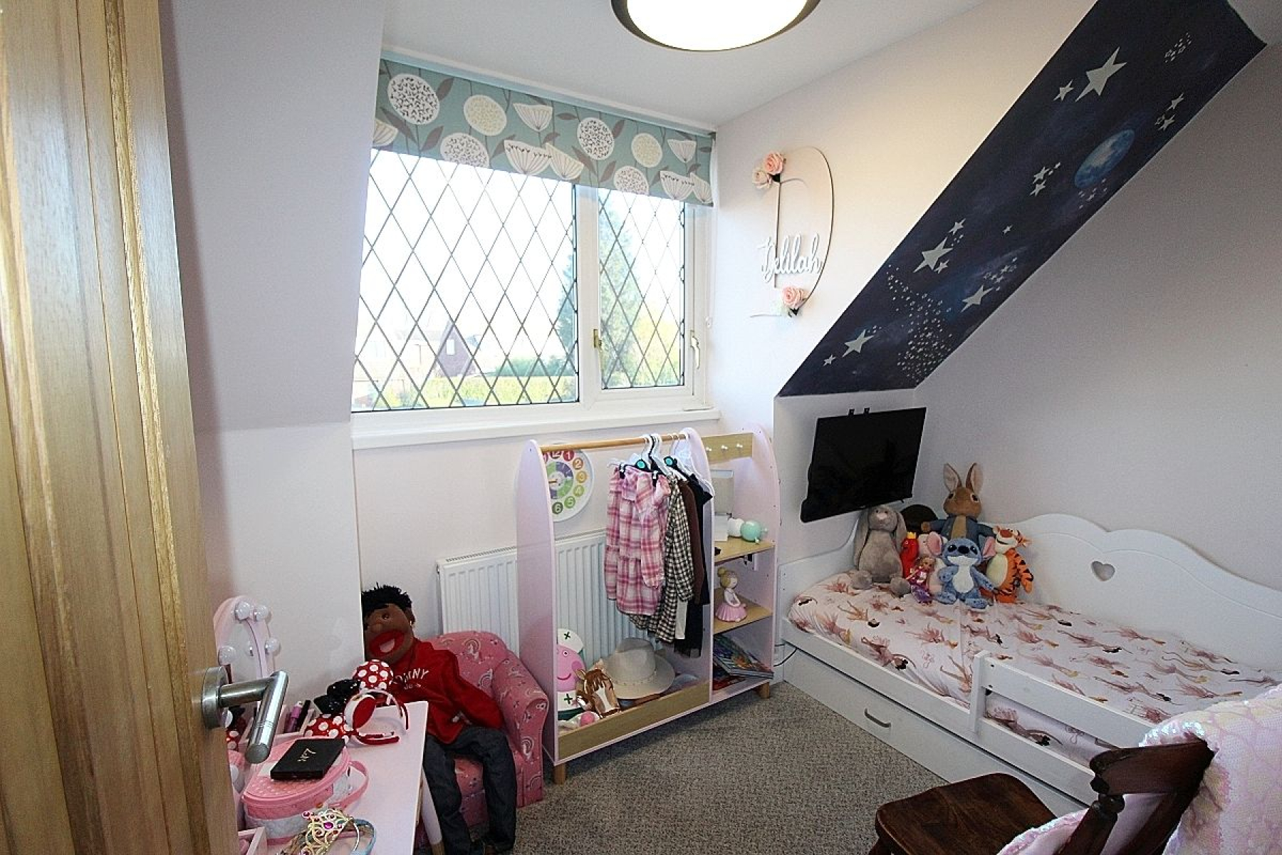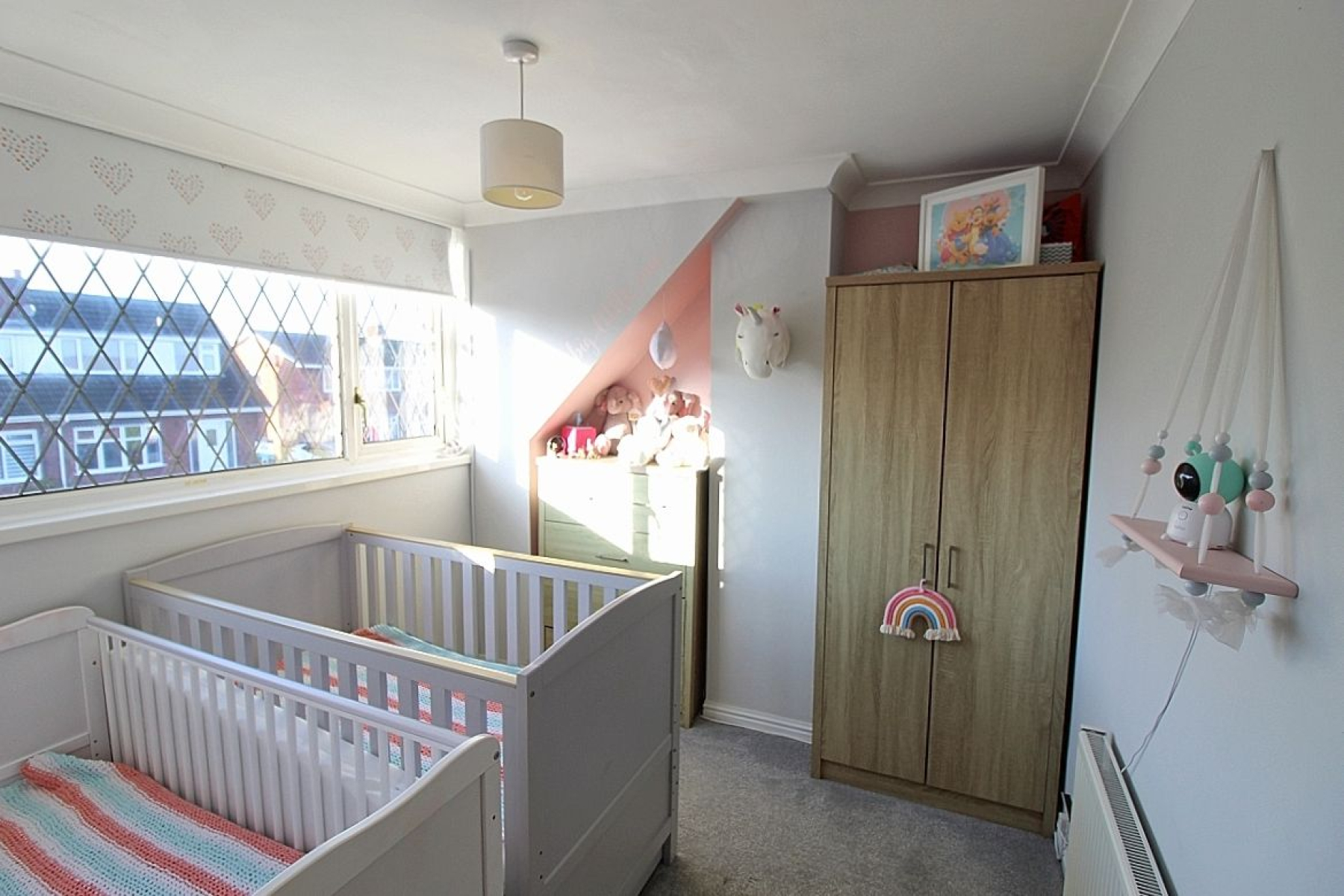 A further double bedroom with carpeted flooring, radiator and a front facing upvc window.