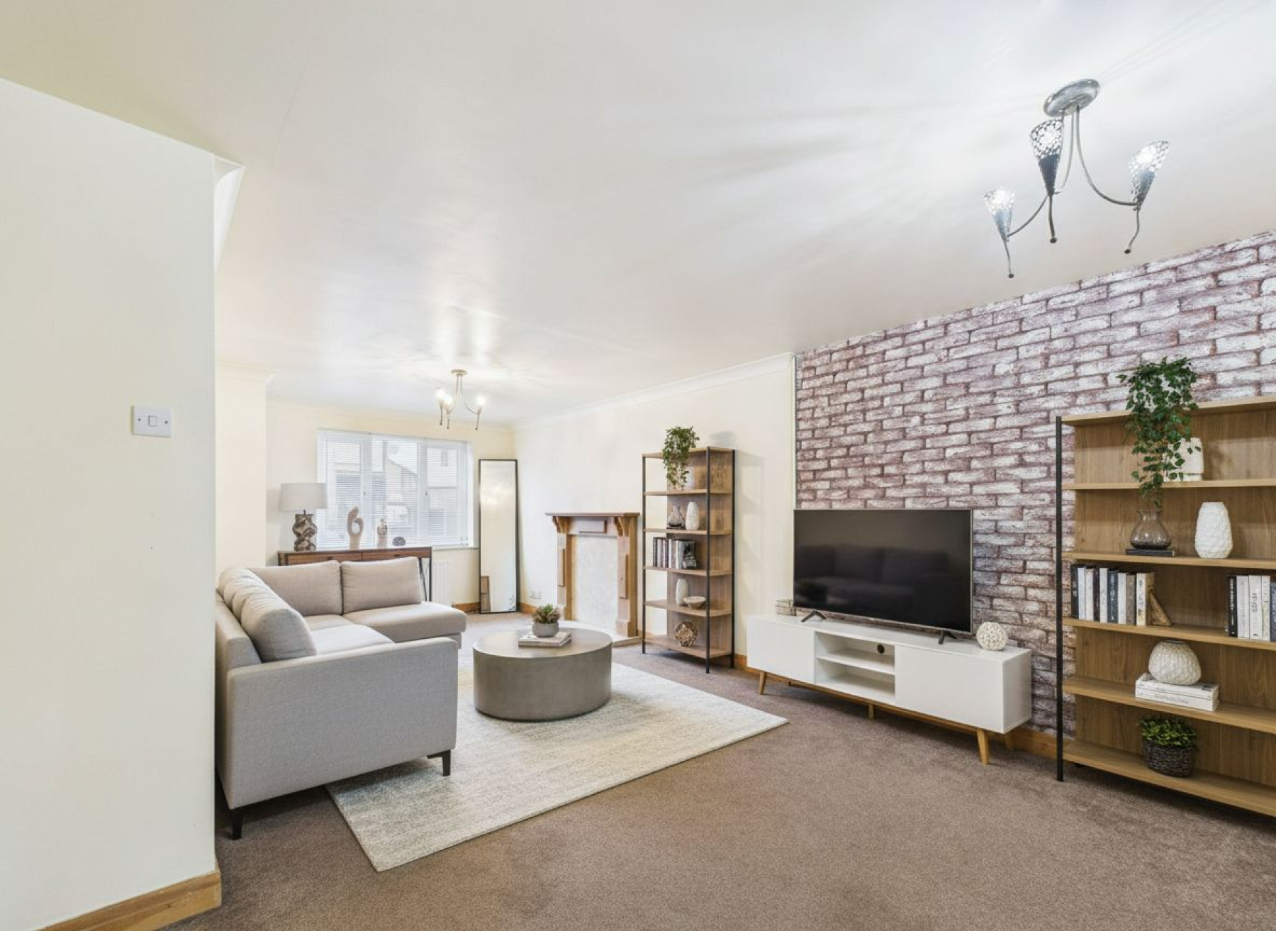 A spacious, carpeted living room with a window overlooking the front of the property. This well proportioned room benefits from a radiator and offers ample space for a range of living furniture, making it ideal for family relaxation and entertaining.