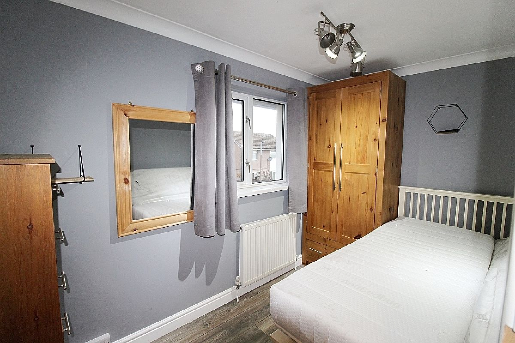 An ample sized third bedroom with fitted wardrobes, laminate flooring, radiator and a upvc window.