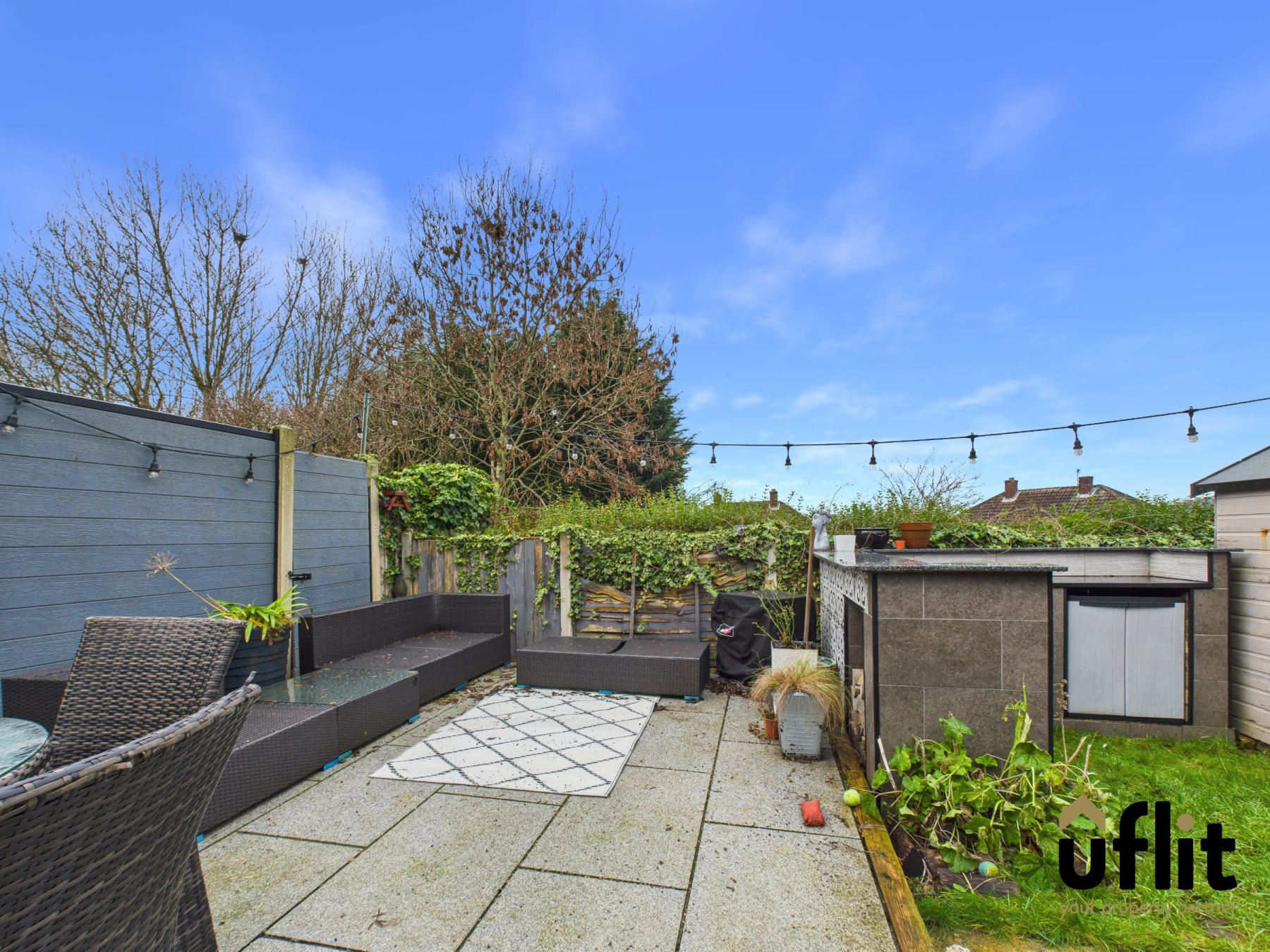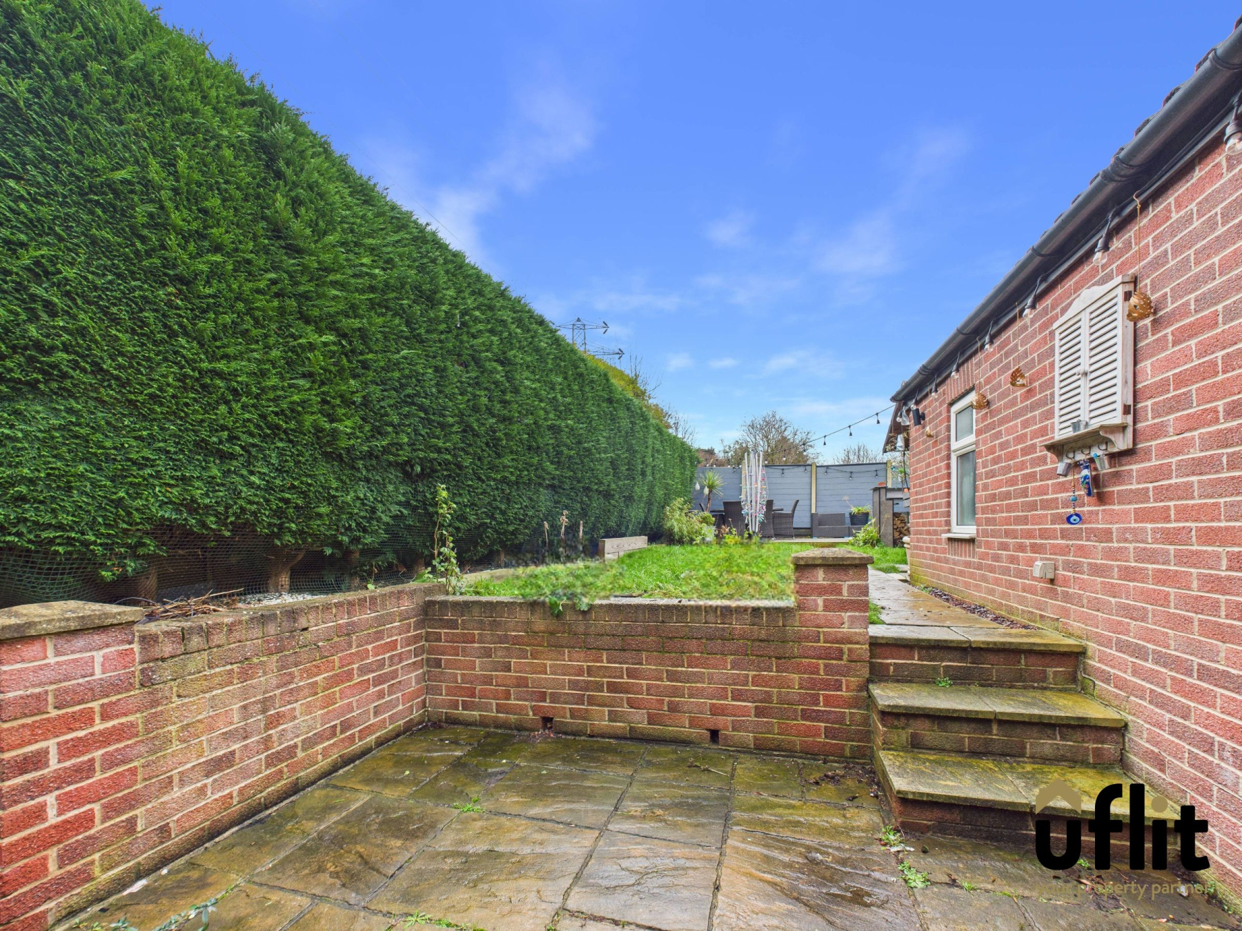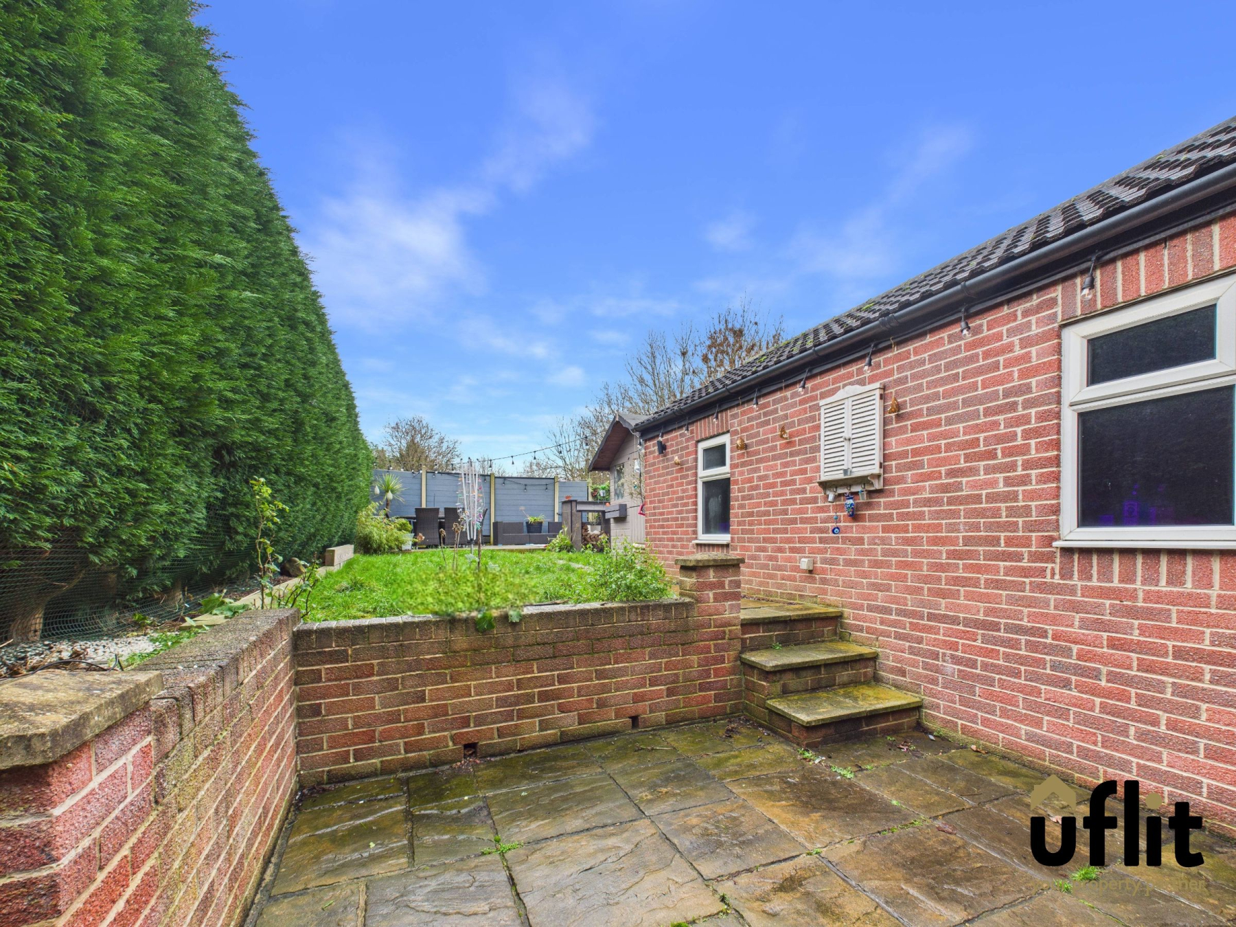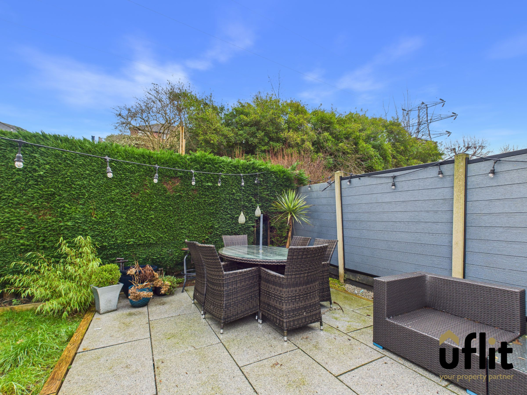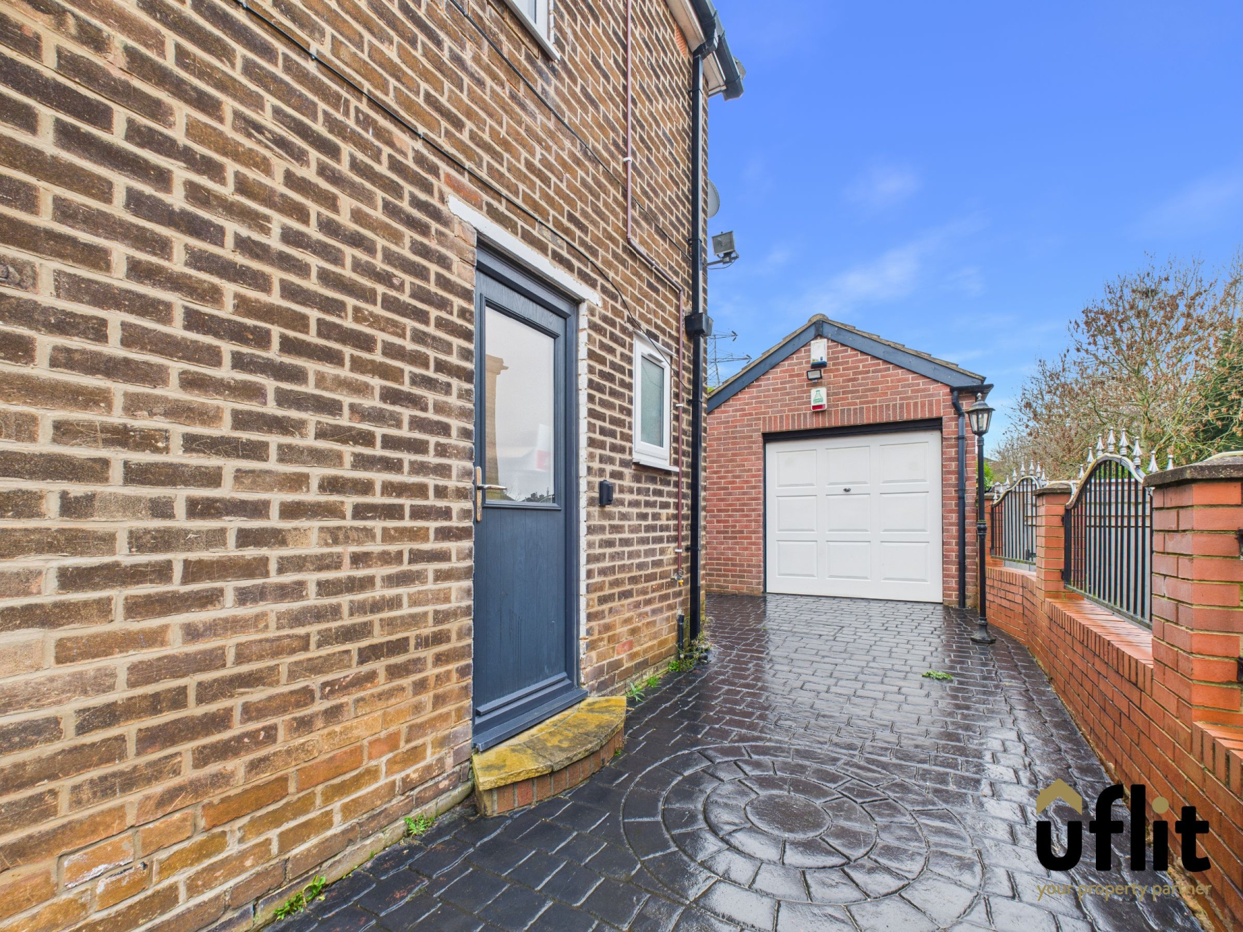 To the front of the property is a patterned concrete driveway providing off-road parking for two vehicles. A side gate offers secure access to the rear garden and garage, creating both practicality and kerb appeal.