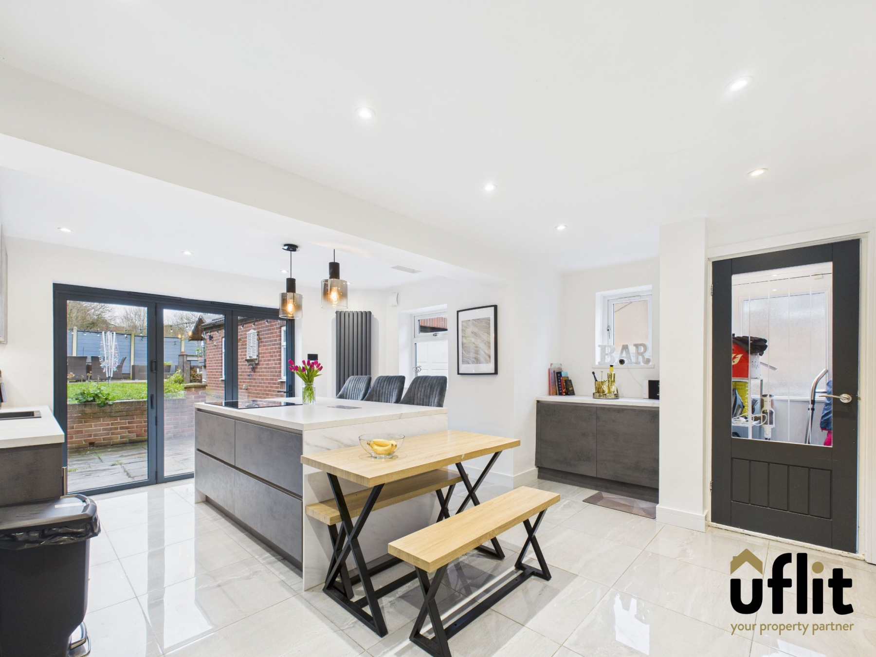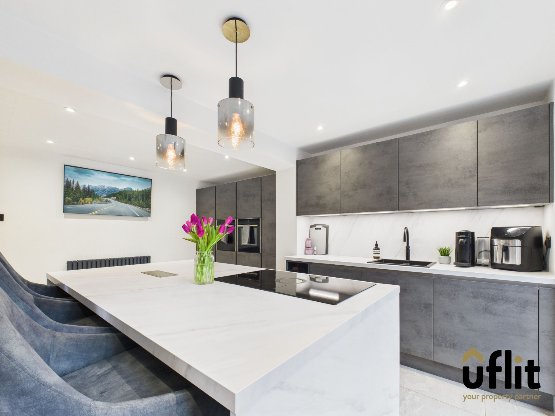 Finished to an impressive standard throughout, the property seamlessly blends modern design with practical living. From the moment you arrive, the home offers strong kerb appeal with a patterned concrete driveway providing off-road parking for two vehicles and secure side access leading to the rear garden and garage. Internally, the accommodation is thoughtfully laid out, offering generous living space and an abundance of natural light.