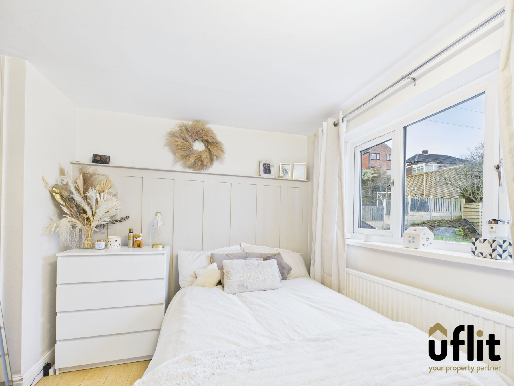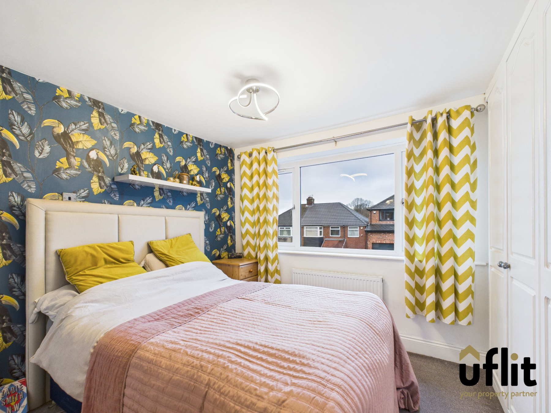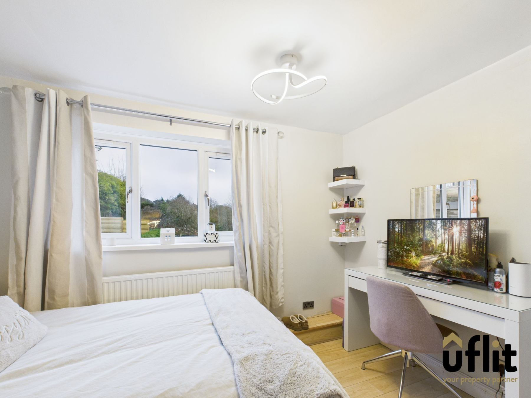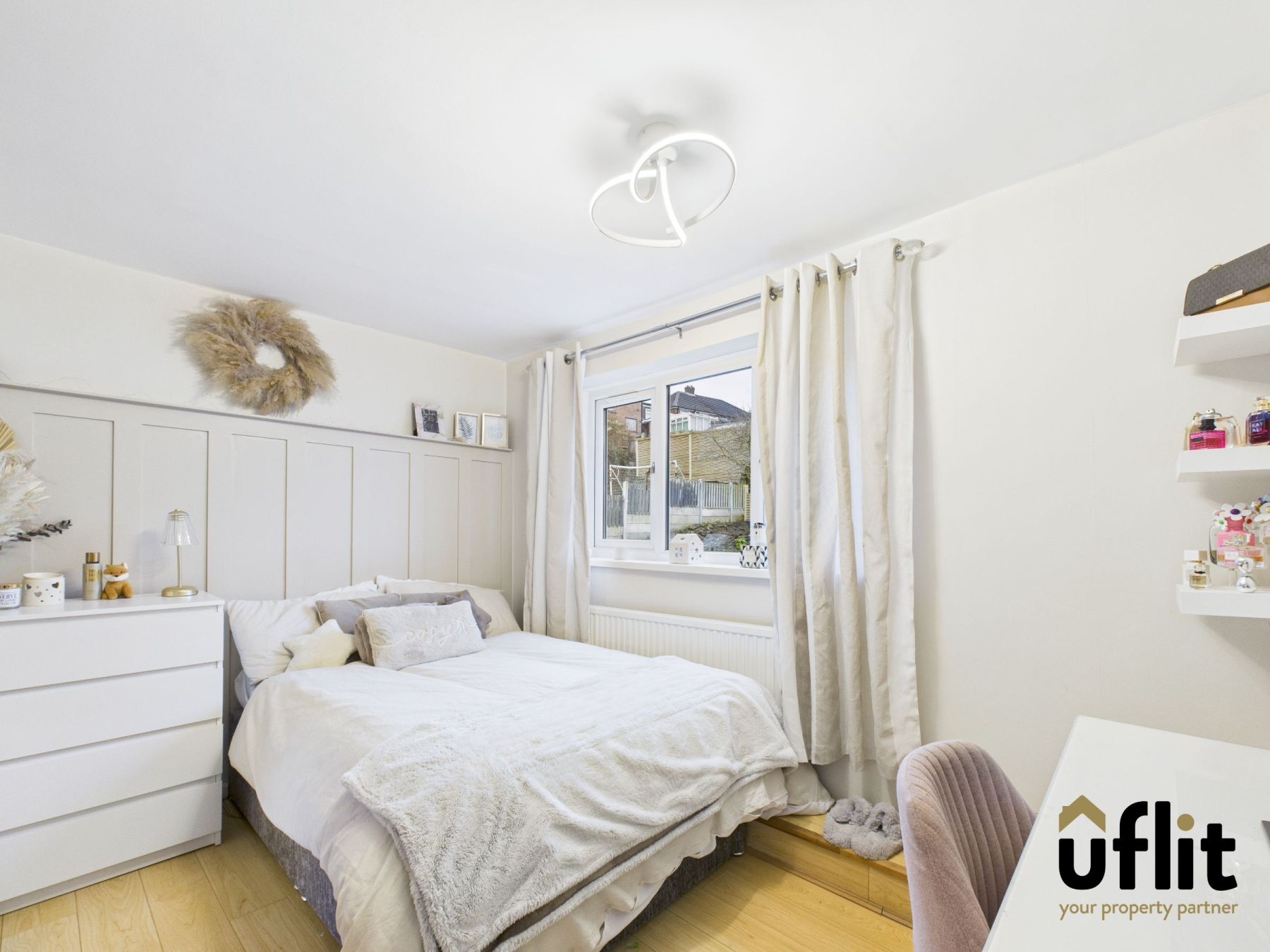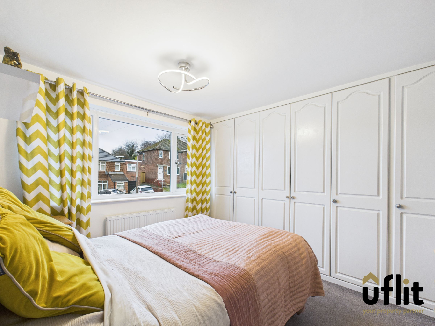 The second bedroom is another well proportioned room, featuring laminate flooring, fitted wardrobes and an additional storage cupboard. A rear facing window and radiator complete this versatile space, ideal for guests or family members.