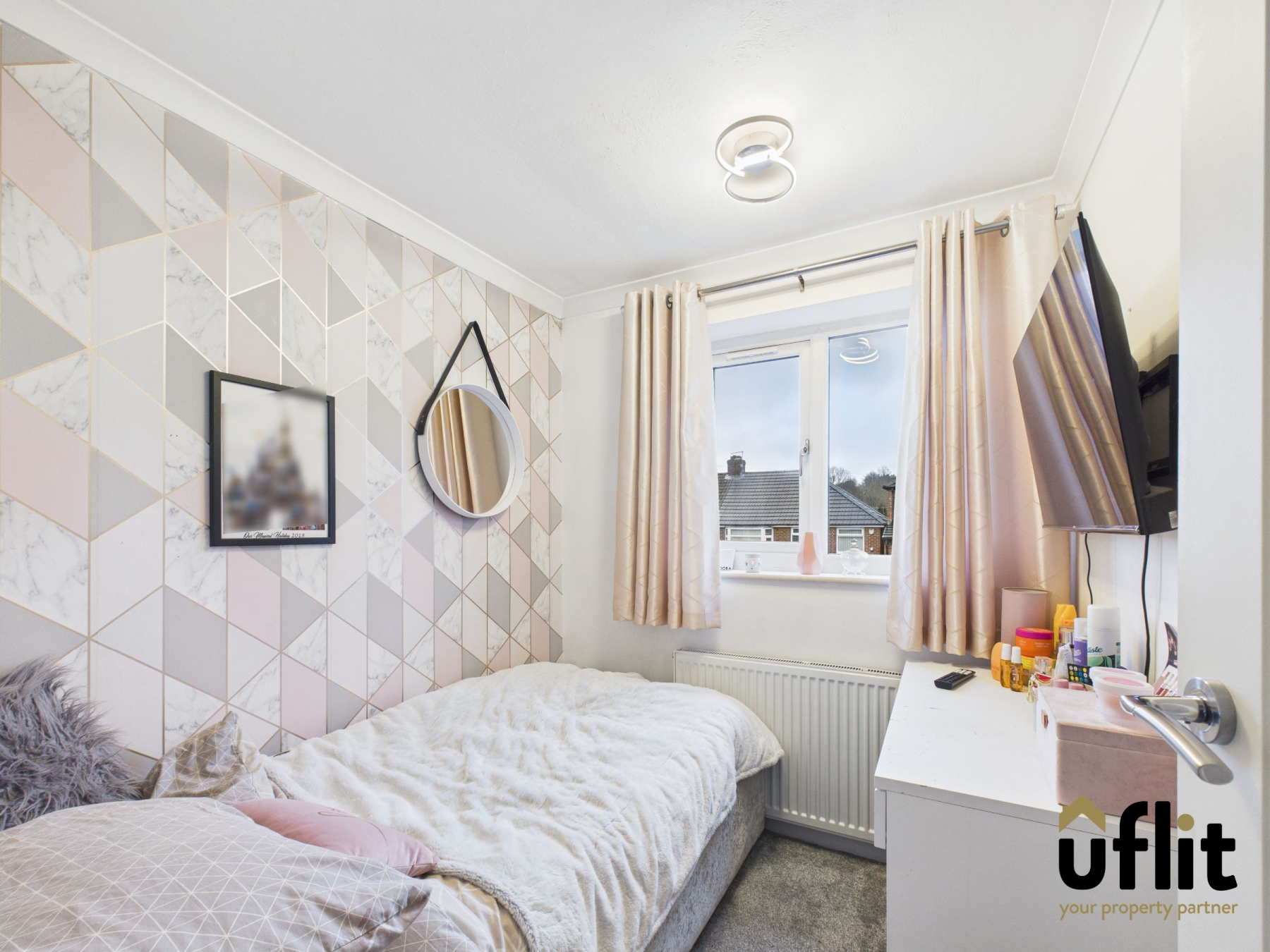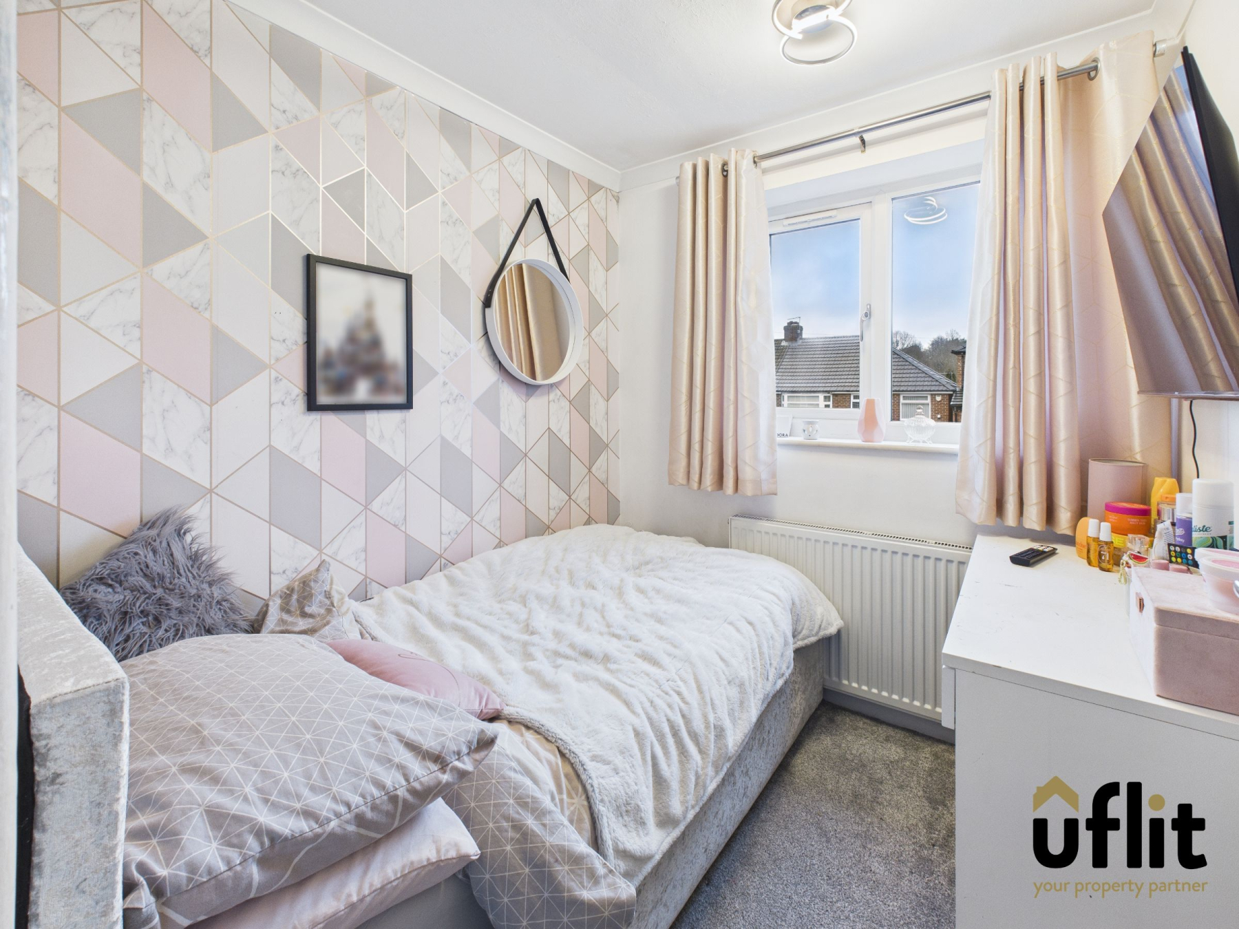 Bedroom three is a neatly presented single room, carpeted for comfort, with a front-facing window and radiator, making it ideal as a child's bedroom, home office or dressing room.