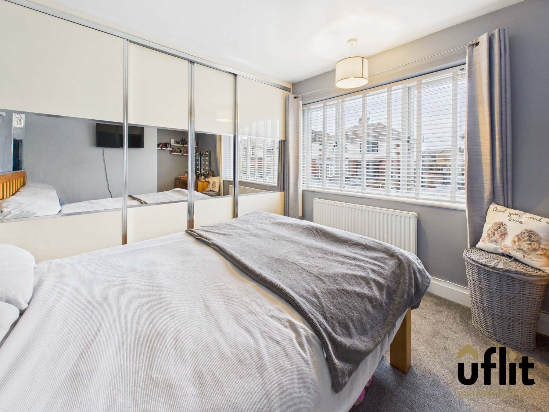 The master bedroom is a well-proportioned double room positioned at the front of the property. Finished with carpet and fitted with a radiator, the room also benefits from double mirrored fitted wardrobes, providing excellent built-in storage while enhancing the sense of space and light.