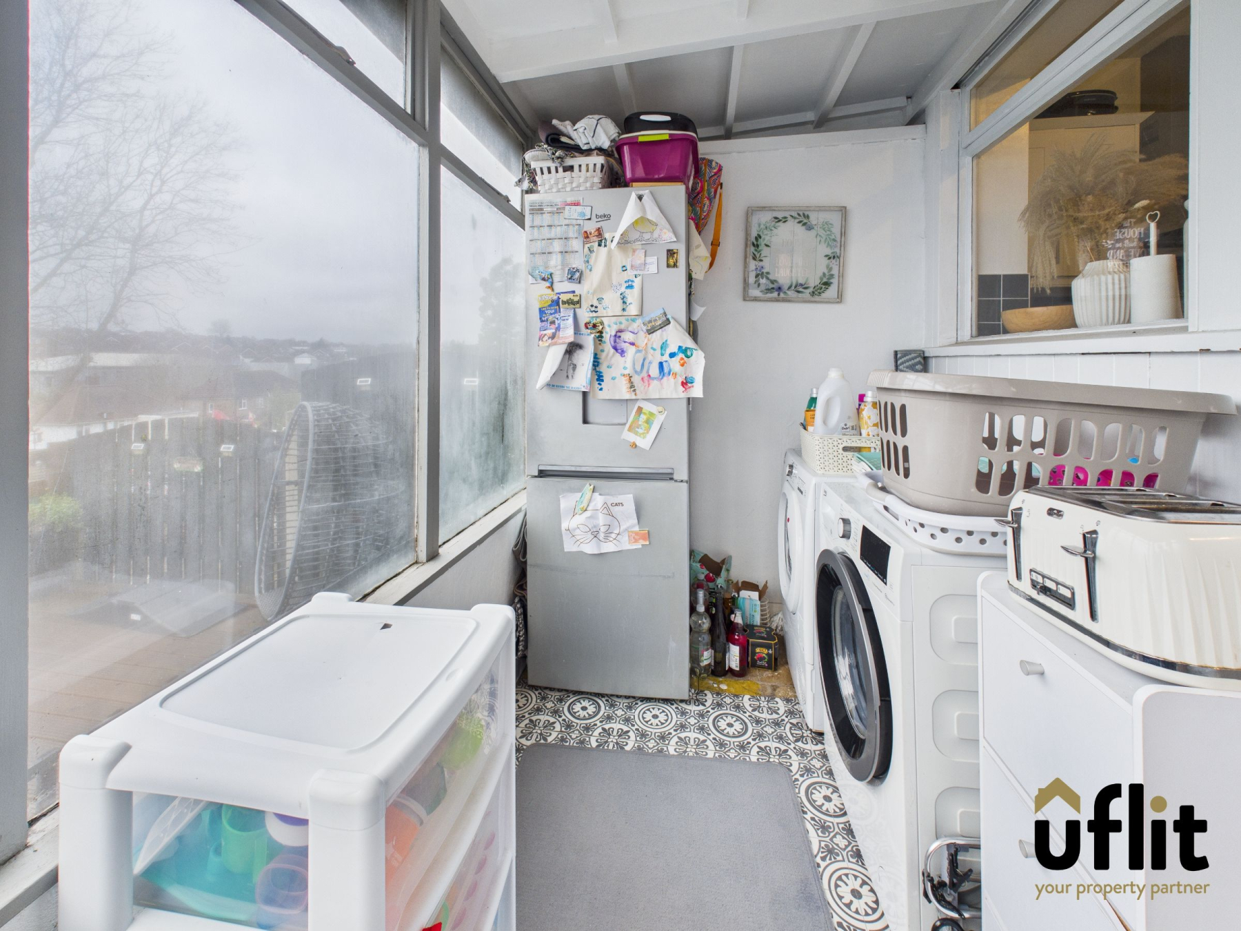 The conservatory has been adapted to incorporate a practical utility area and is finished with lino flooring. There is space for a fridge freezer, washing machine and dryer, making this a highly functional space for everyday living. A door provides direct access to the rear garden, adding further convenience.