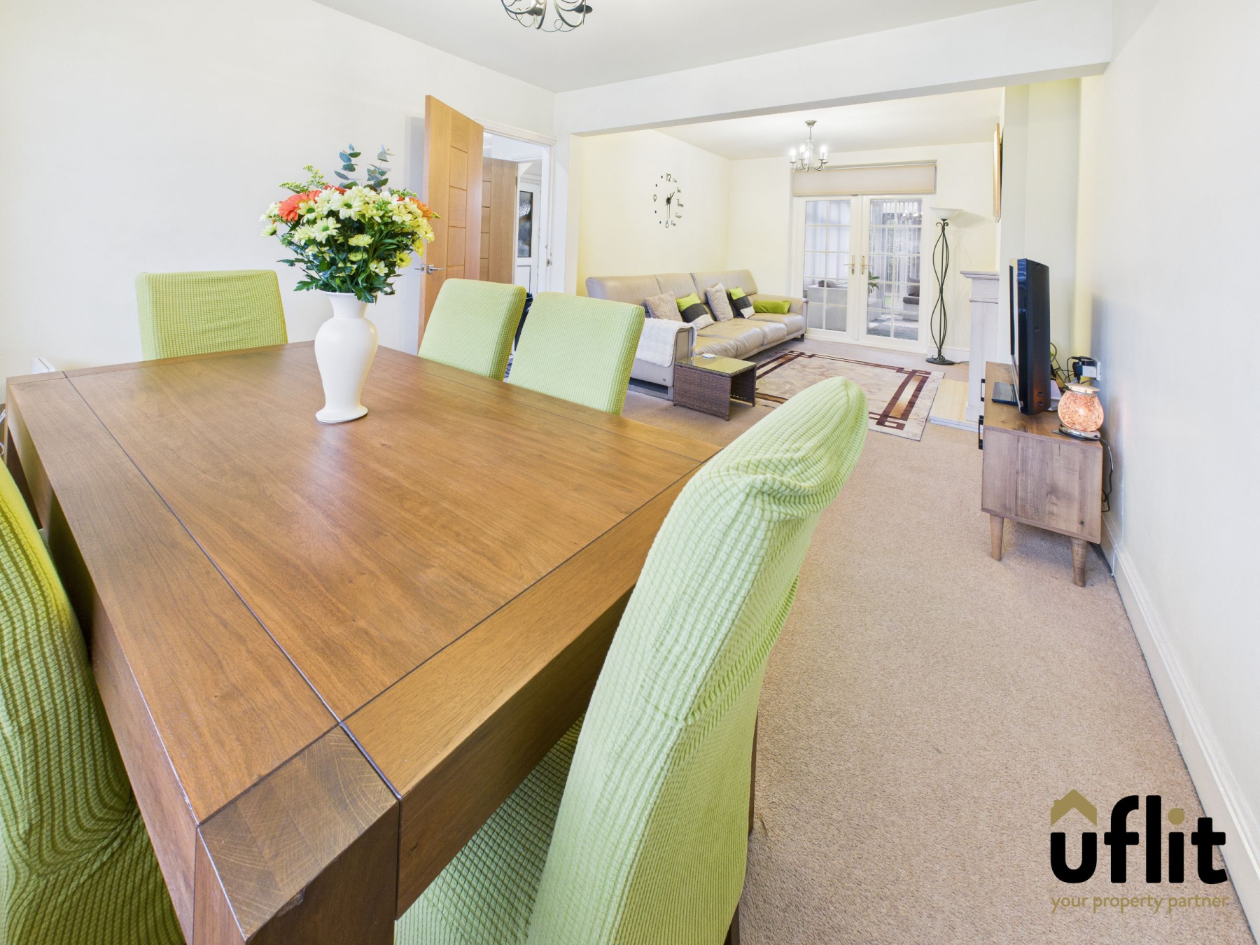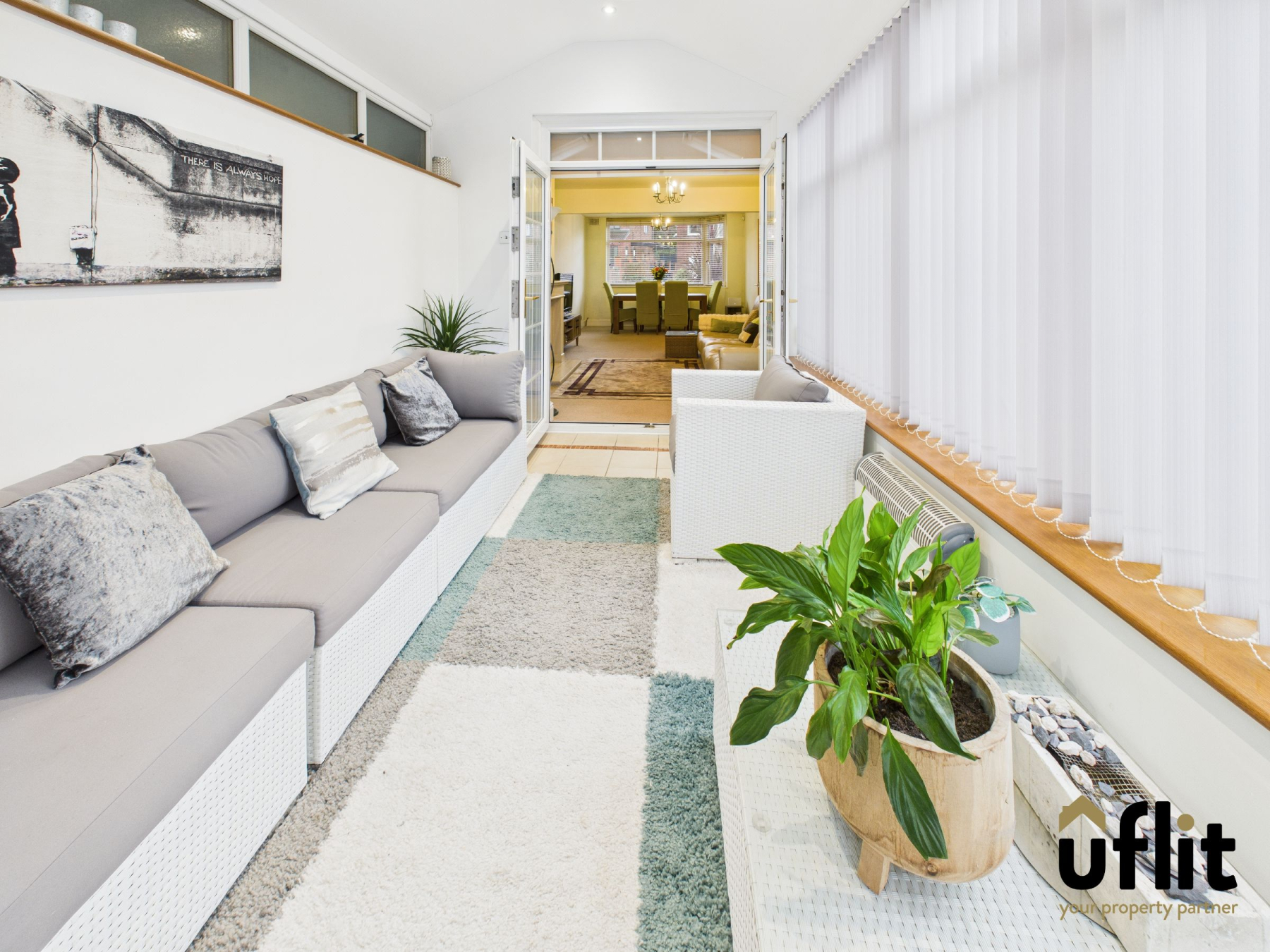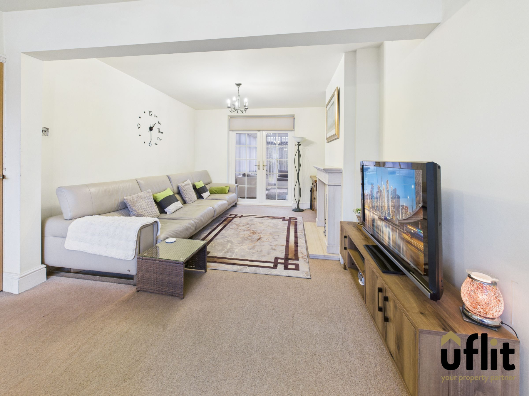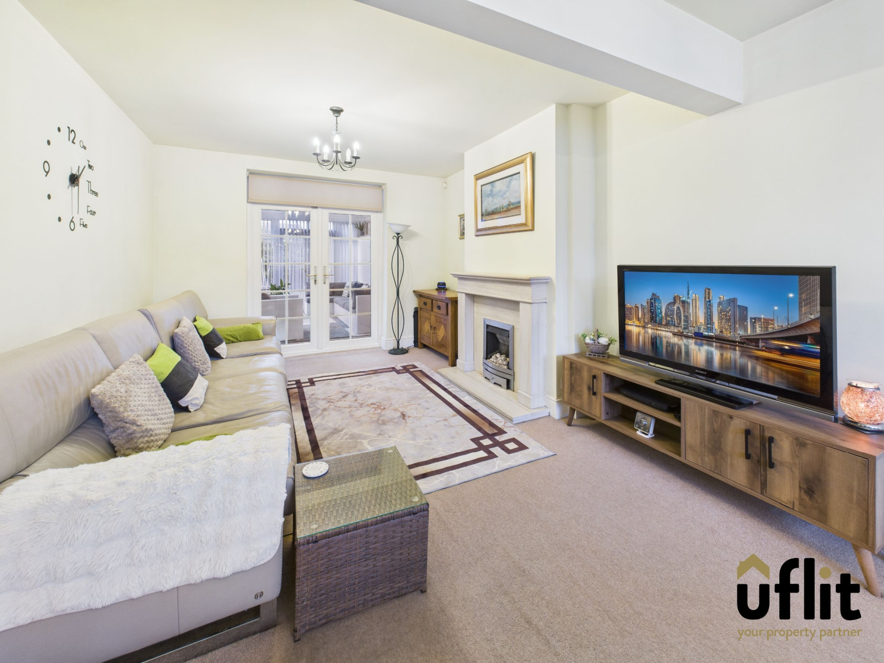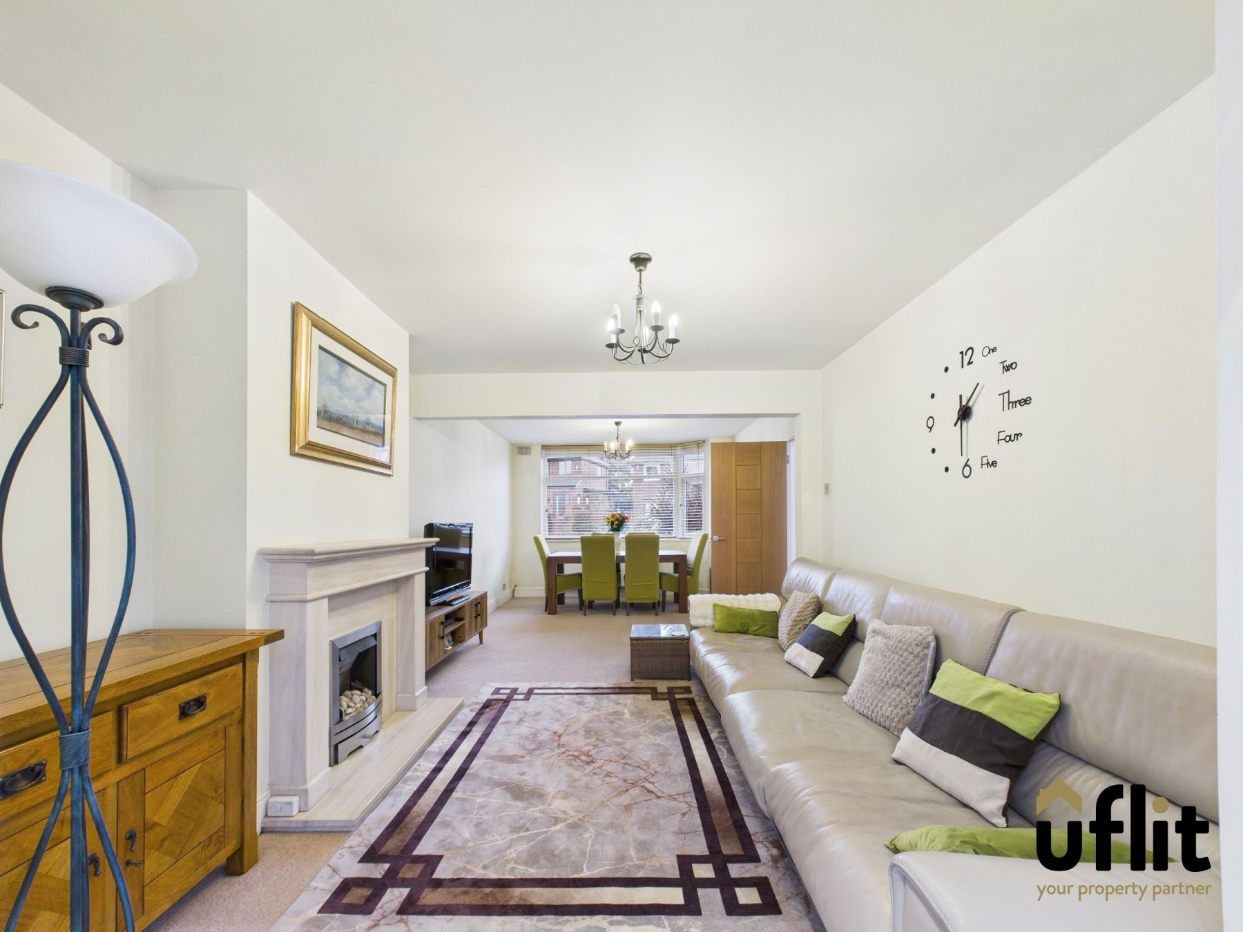 Upon entering the property, a welcoming entrance hall provides access to both the main living area and the kitchen, with natural light enhanced by a side-facing window. The spacious open-plan lounge/ dining room is a key feature of the home, enjoying excellent proportions and natural light from a bay window to the front. A feature gas fire with stone surround provides a focal point, while French doors to the rear open into the sunroom, creating an ideal flow for entertaining and everyday living.