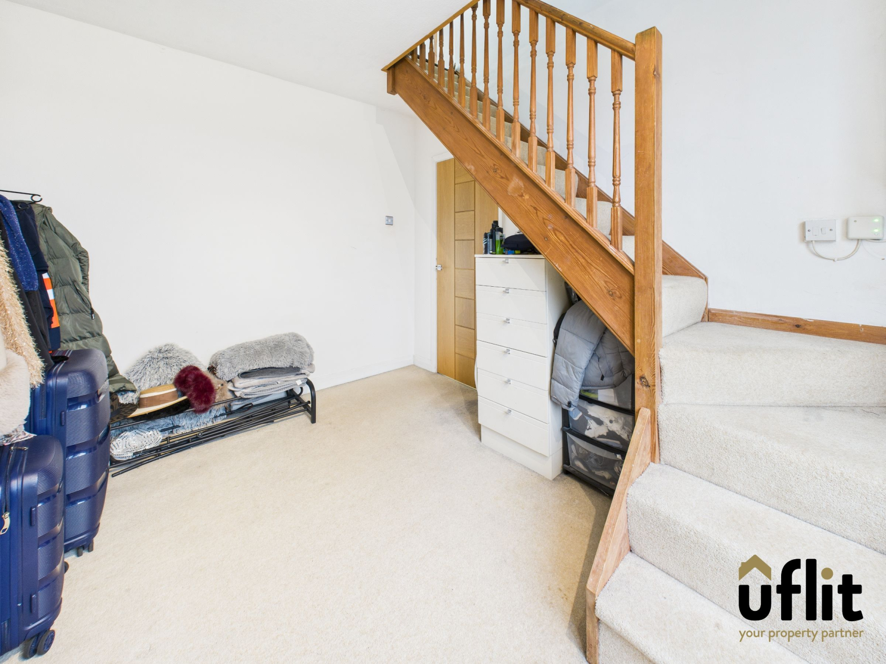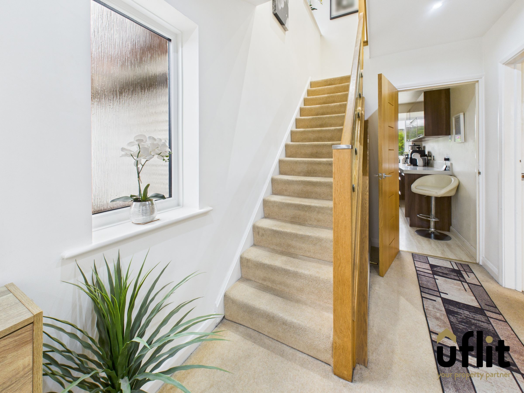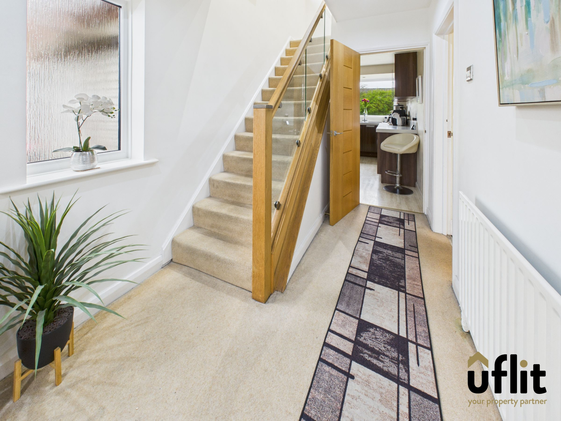 The welcoming entrance hall features carpeted flooring, a radiator, and a window to the side of the property allowing natural light to filter through. From here, doors lead to the lounge/dining room and the kitchen. The property is fitted with Hive-controlled central heating for added comfort and efficiency.