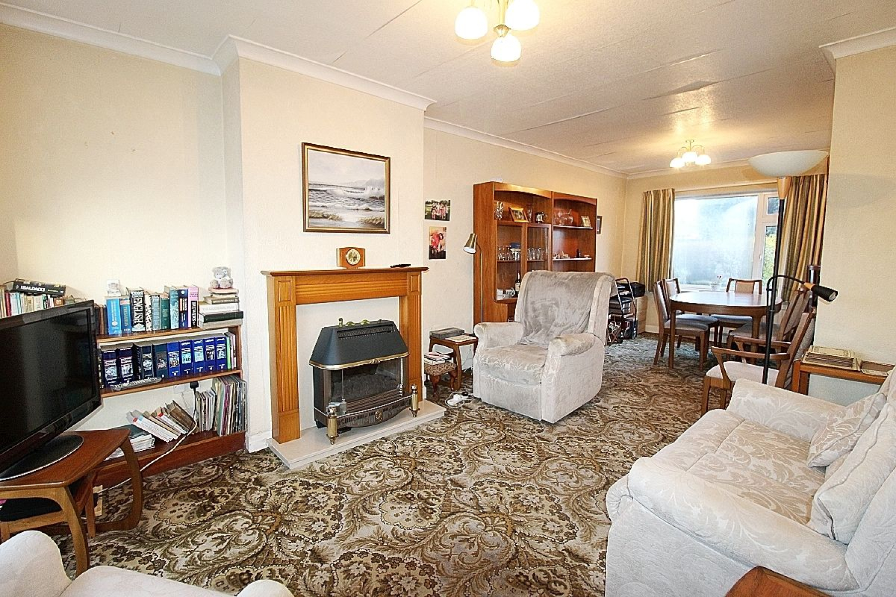 Open Plan Lounge/Diner w: 3.4m x l: 6.9m (w: 11' 2" x l: 22' 8") A bright and a warming open plan lounge / diner with an attractive focal feature fire, carpeted flooring which flows throughout two radiators add warmth, a front facing upvc bay window along with a rear upvc window illuminates this space and a door to the kitchen. Measured to maximum measurements.