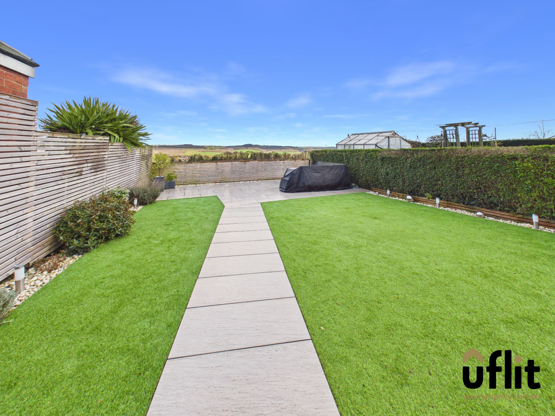 Externally, the property continues to impress with a rear garden landscaped to perfection. A block-paved seating area steps down to a low-maintenance artificial lawn, complemented by slate-tiled patio and walkway areas. Decorative pebbled borders frame the garden beautifully and the space is fully enclosed for privacy while enjoying truly stunning views.