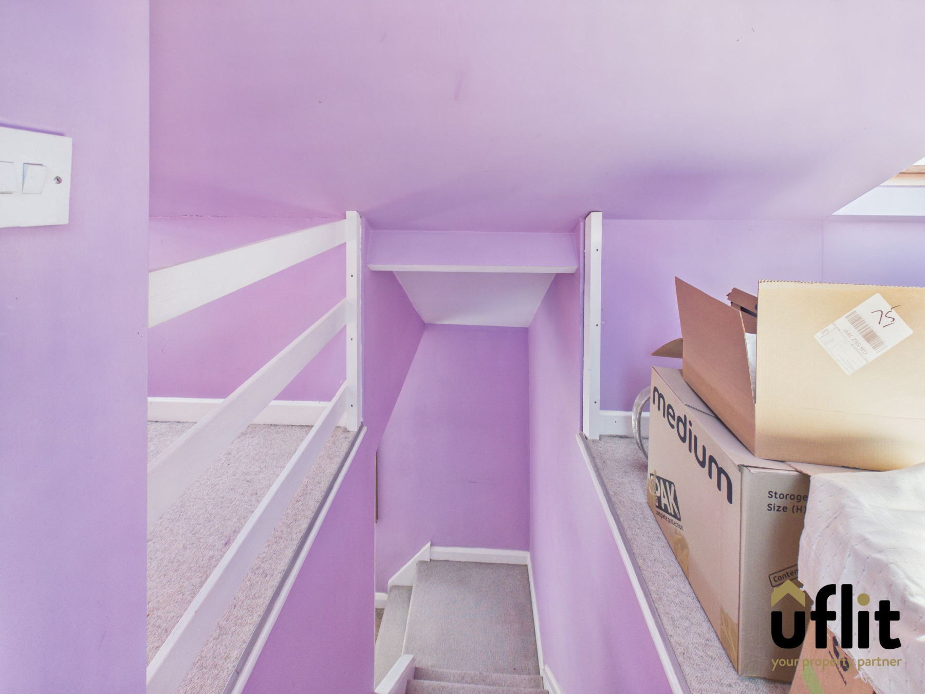 Accessed via stairs from bedroom two, the loft is fully boarded and finished with carpeted flooring. Two Velux windows allow natural light to fill the space, which also benefits from useful storage, making it a versatile additional area.