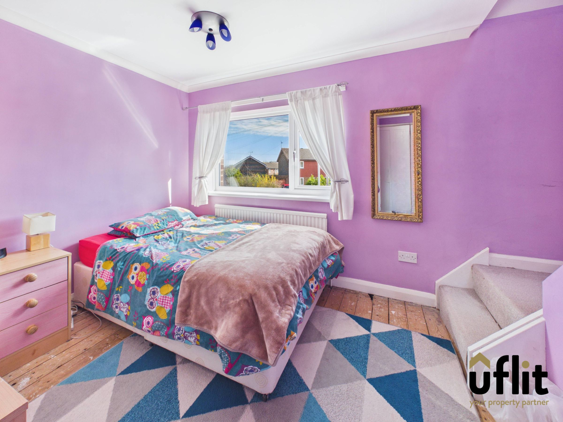 Another well-proportioned double bedroom with wooden flooring and a window to the front. This room benefits from stairs leading to the loft space, adding versatility and additional usable space.