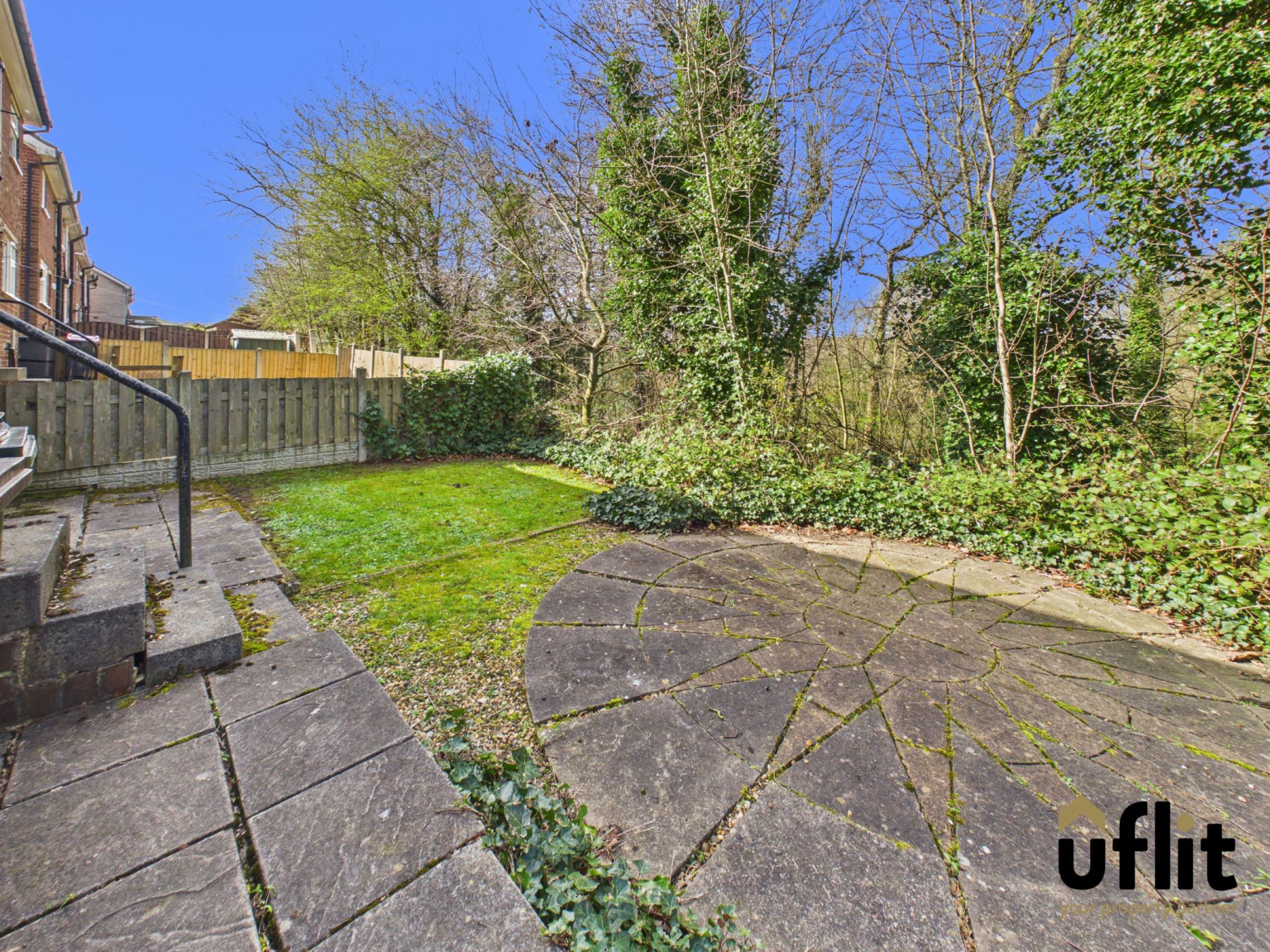 To the rear, the garden can be accessed either directly from the kitchen or via the side of the property. Steps lead down to a patio seating area, perfect for outdoor entertaining, which in turn leads onto a lawned garden space. The front of the property benefits from a well-maintained lawn and pathway leading to the entrance.
