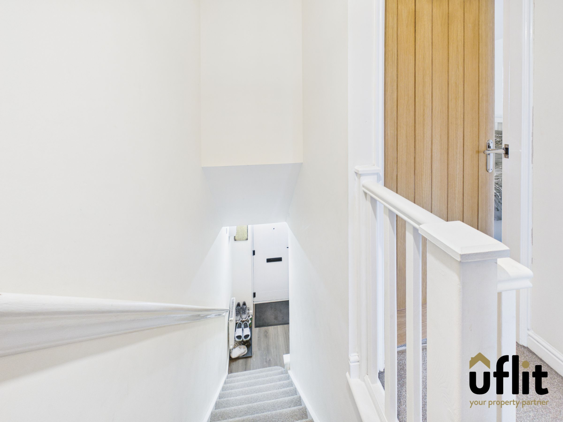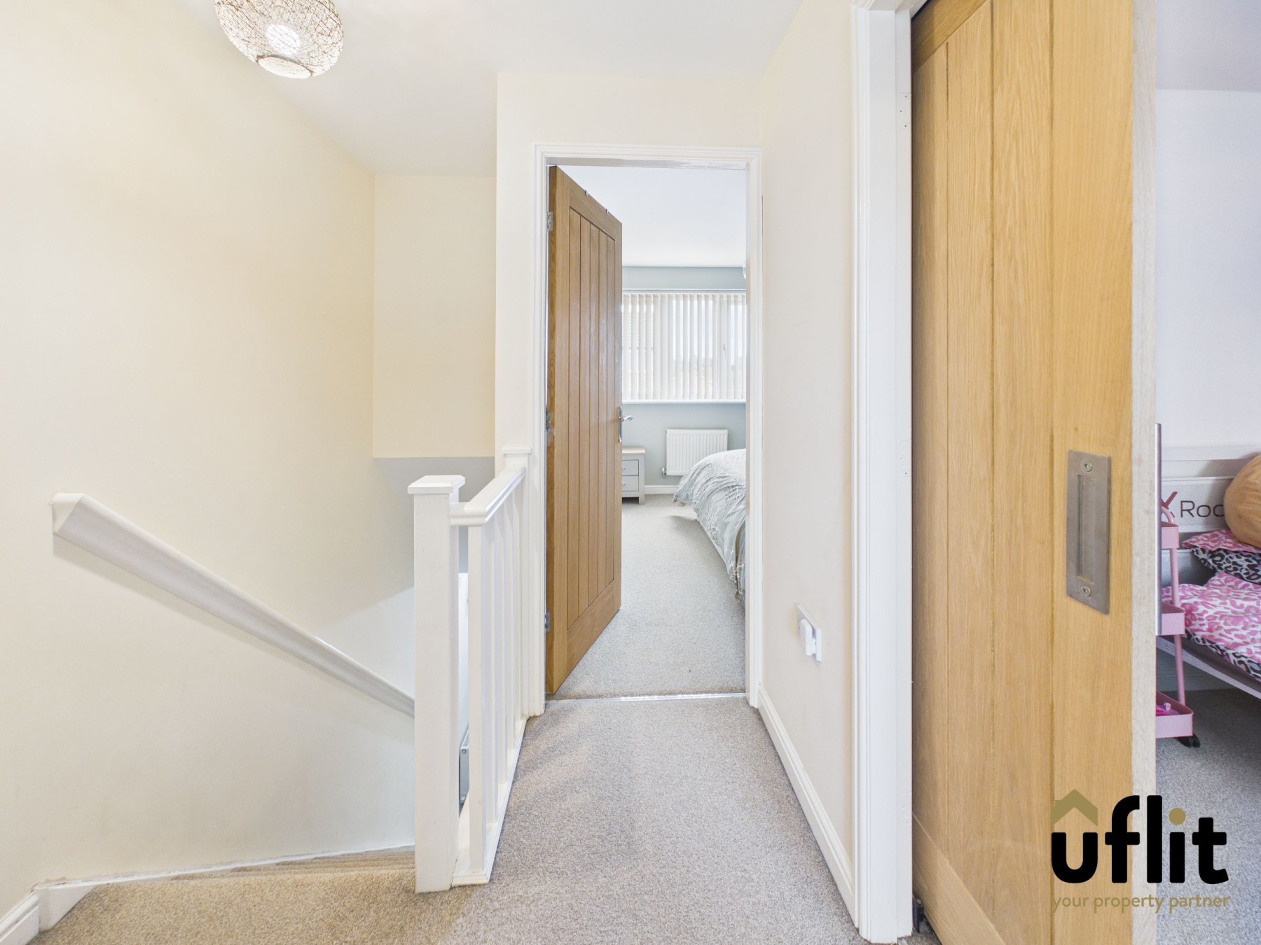 The first floor landing is accessed via carpeted stairs and includes a radiator, providing access to all first floor accommodation.