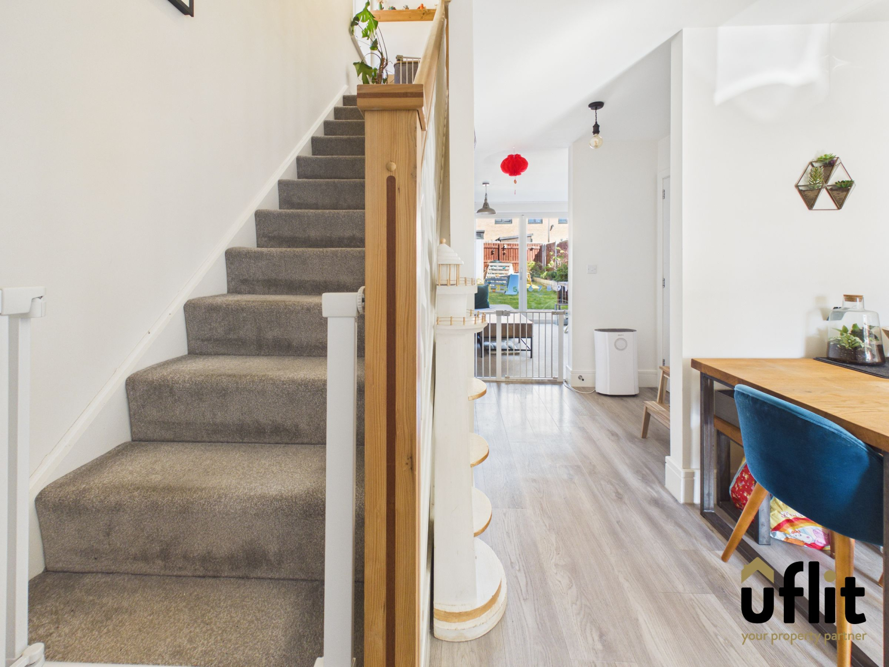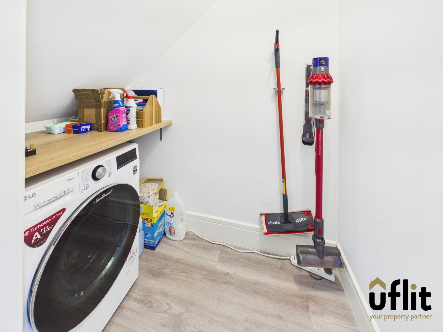 Conveniently tucked away under the stairs, the utility cupboard offers space and plumbing for a washing machine, helping to keep the main kitchen area clutter free.