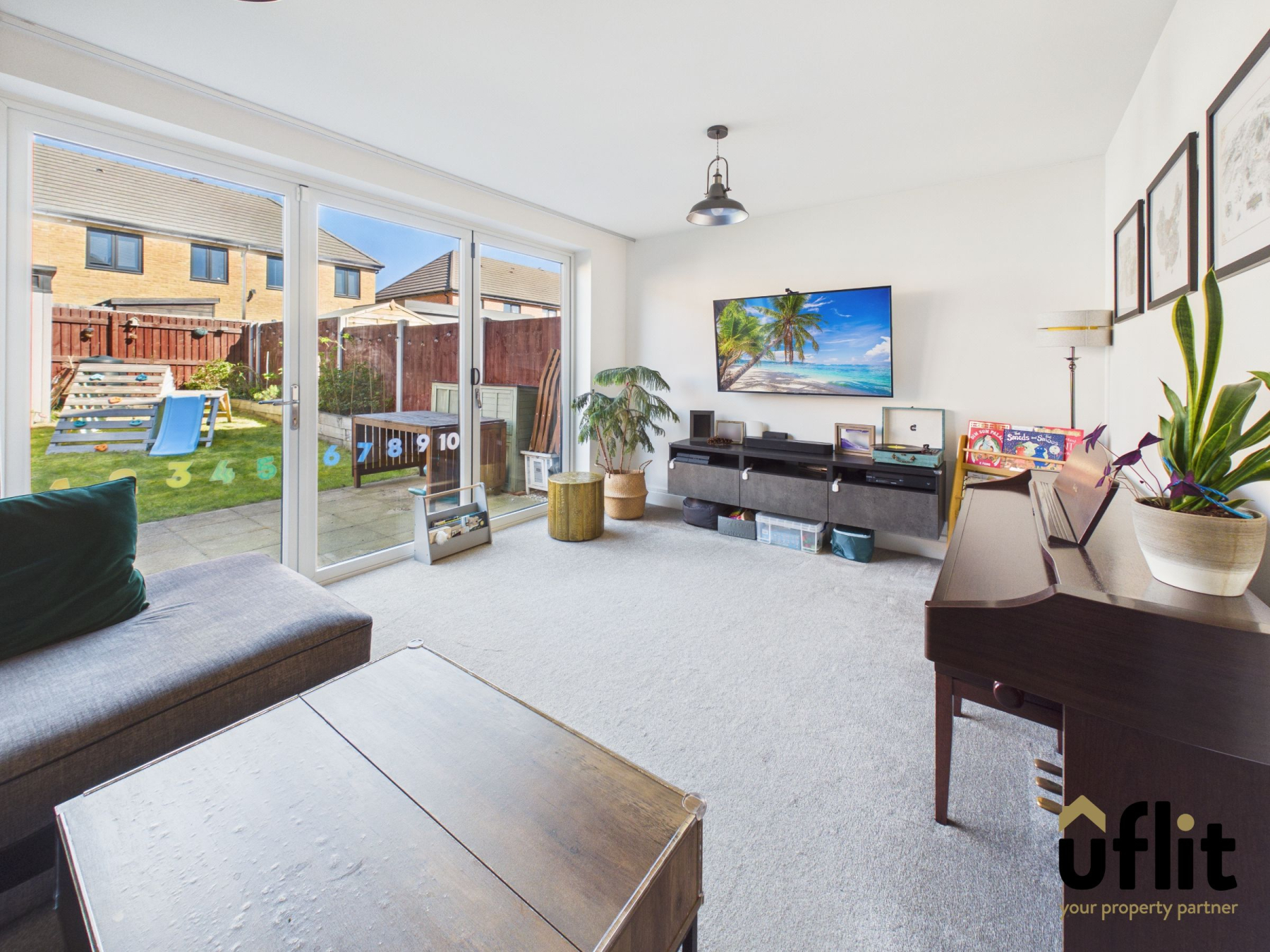 The lounge is a bright and inviting living space, laid with carpet and warmed by a radiator. Bi-fold doors to the rear flood the room with natural light while creating a seamless connection to the garden, perfect for both relaxing and entertaining.