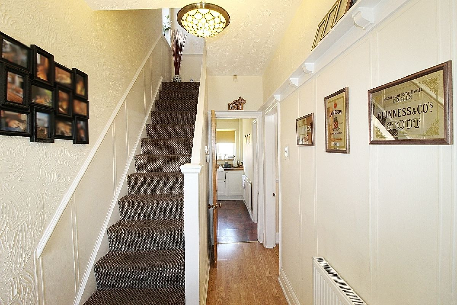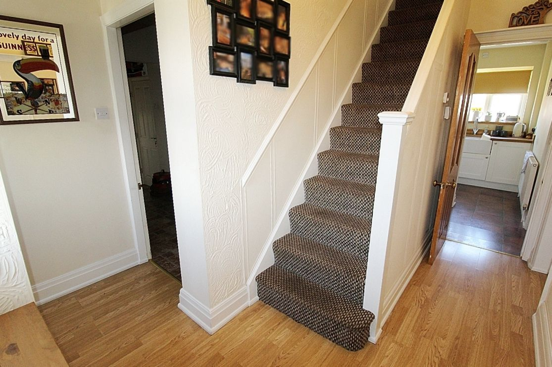 Entering through a glazed upvc door with glazed side panel to a warm and welcoming hallway with laminate flooring leading to carpeted stairs to first floor accommodation, radiator and solid wood doors giving access to the lounge, kitchen and further doors to the wc and cloakroom/ utility room.