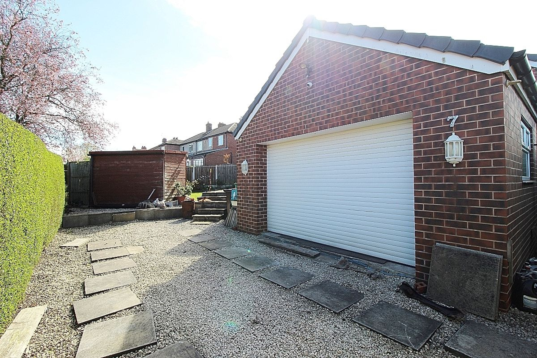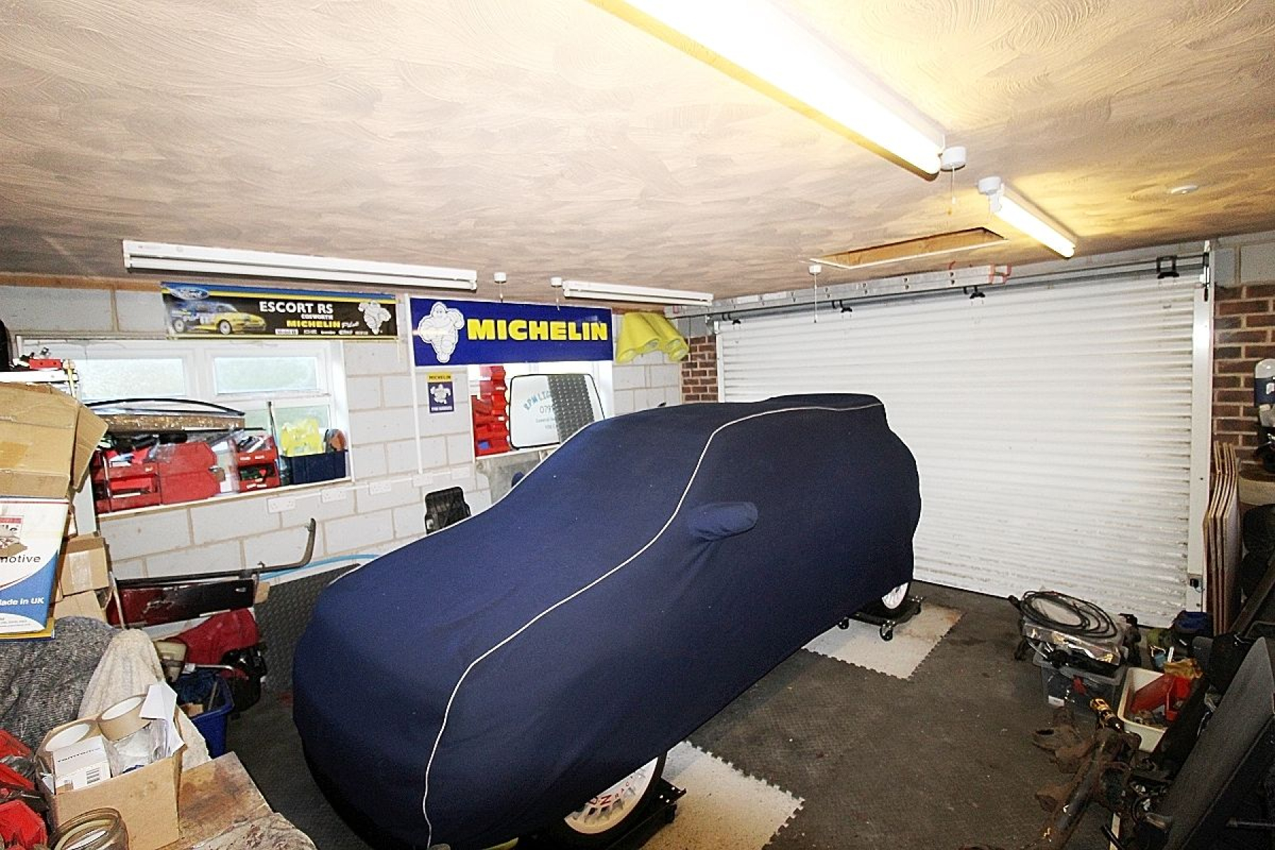 The double garage benefits from a remote electric roller door, two side facing upvc windows and a further door which opens onto steps giving access to the rear garden.