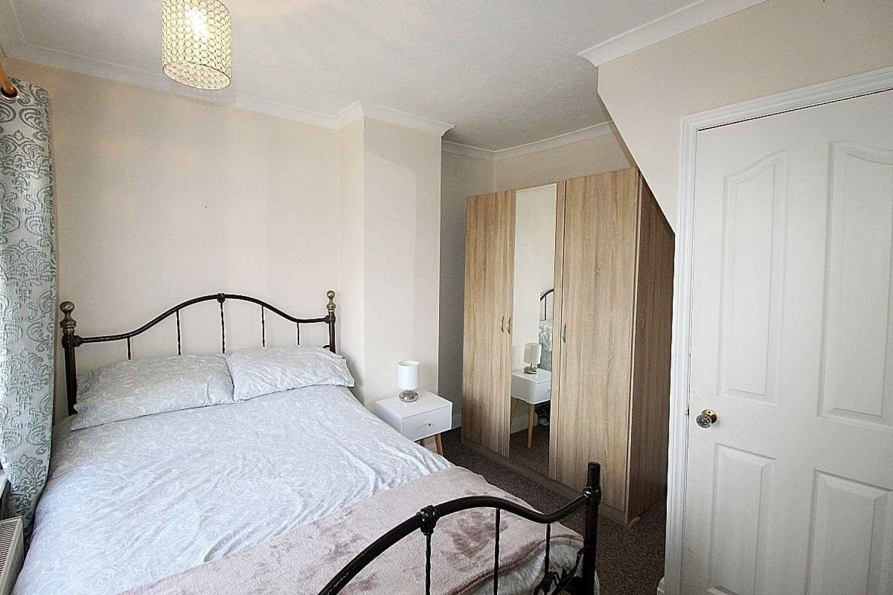 A further double bedroom with carpeted flooring, radiator and rear facing upvc window.