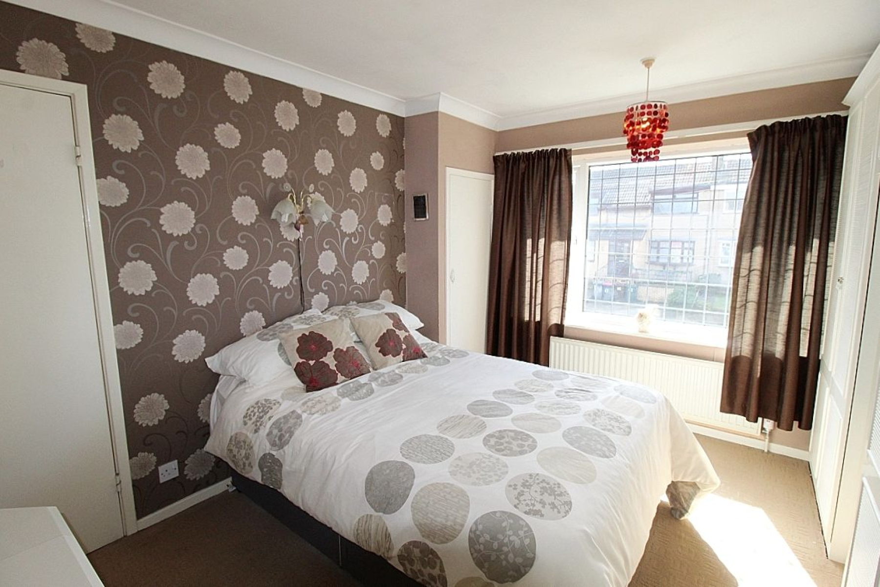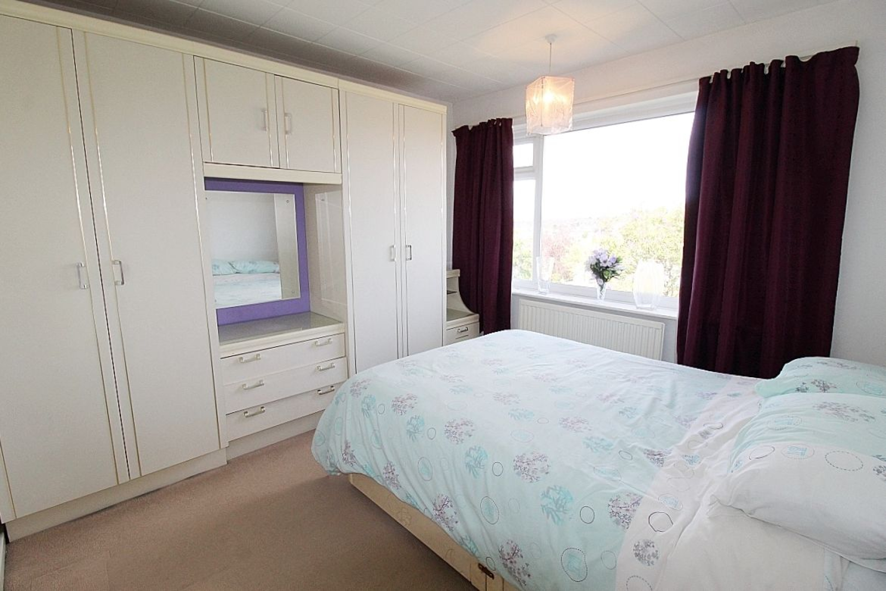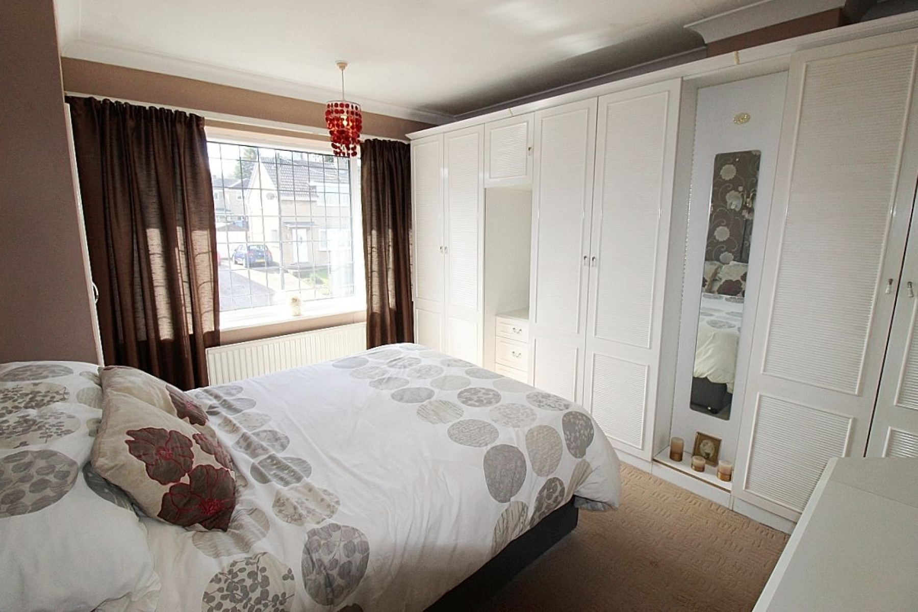Master bedroom w: 3.3m x l: 3.7m (w: 10' 10" x l: 12' 2") A double bedroom with a range of fitted wardrobes and furniture, carpeted flooring, radiator and a front facing upvc window.