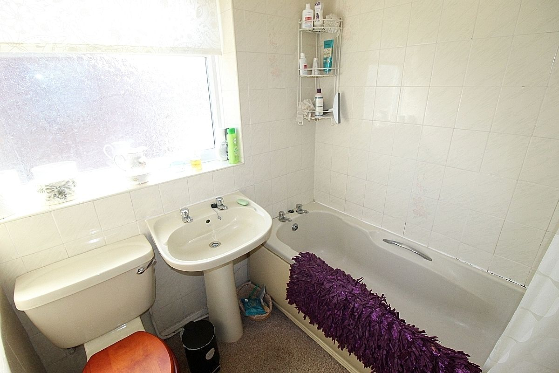 Family Bathroom w: 1.9m x l: 1.9m (w: 6' 3" x l: 6' 3") Comprising of a panelled bath, wash hand basin and low level wc. Fully tiled walls, carpeted flooring, radiator and a side facing upvc window.