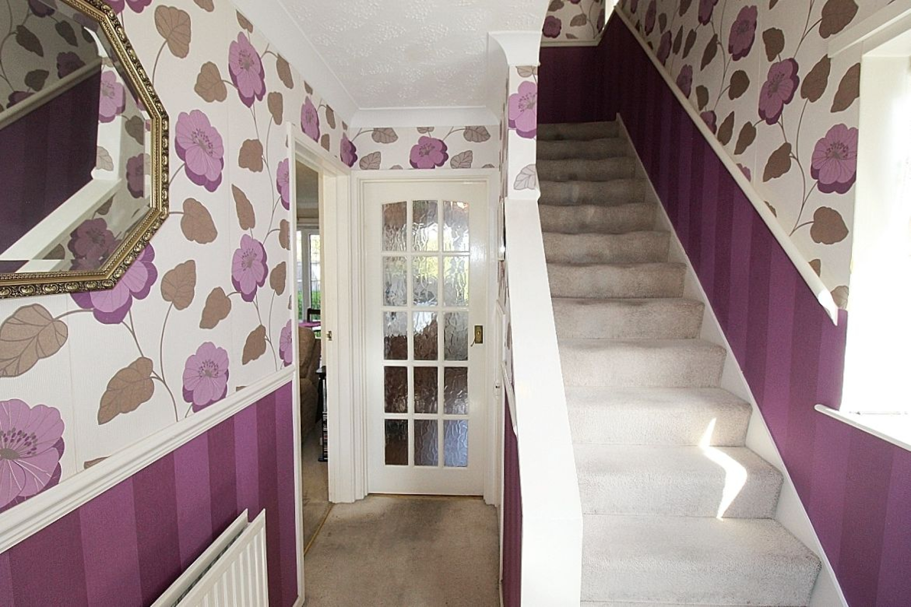 Entrance hall Entering through a upvc door with glazed side panel to a welcoming hallway with carpeted stairs leading to first floor accommodation with a useful under stairs storage cupboard utilising space. Glazed paneled doors give access to the lounge diner and kitchen and a side upvc window illuminates whilst a radiator adds warmth.