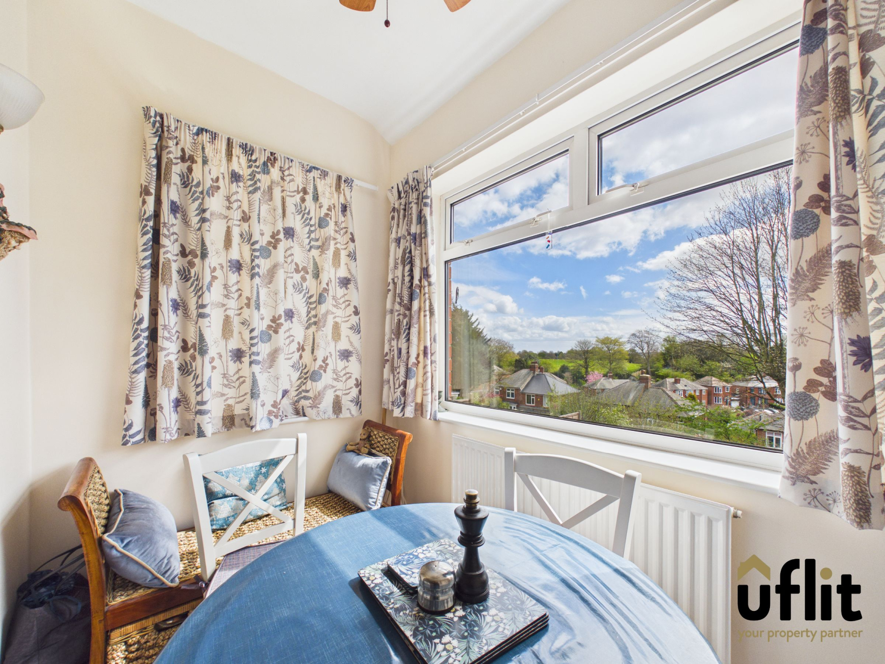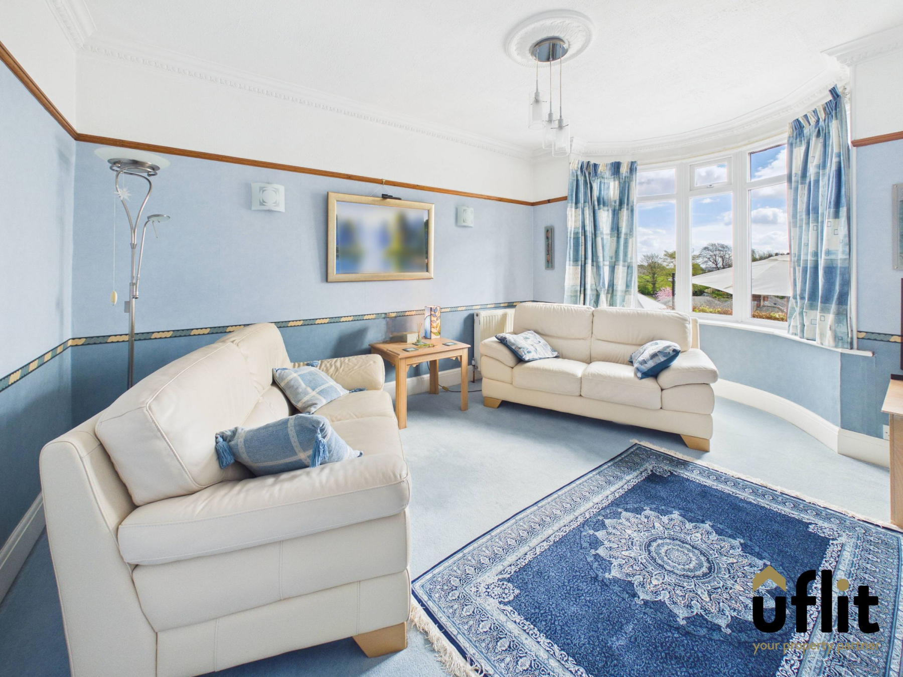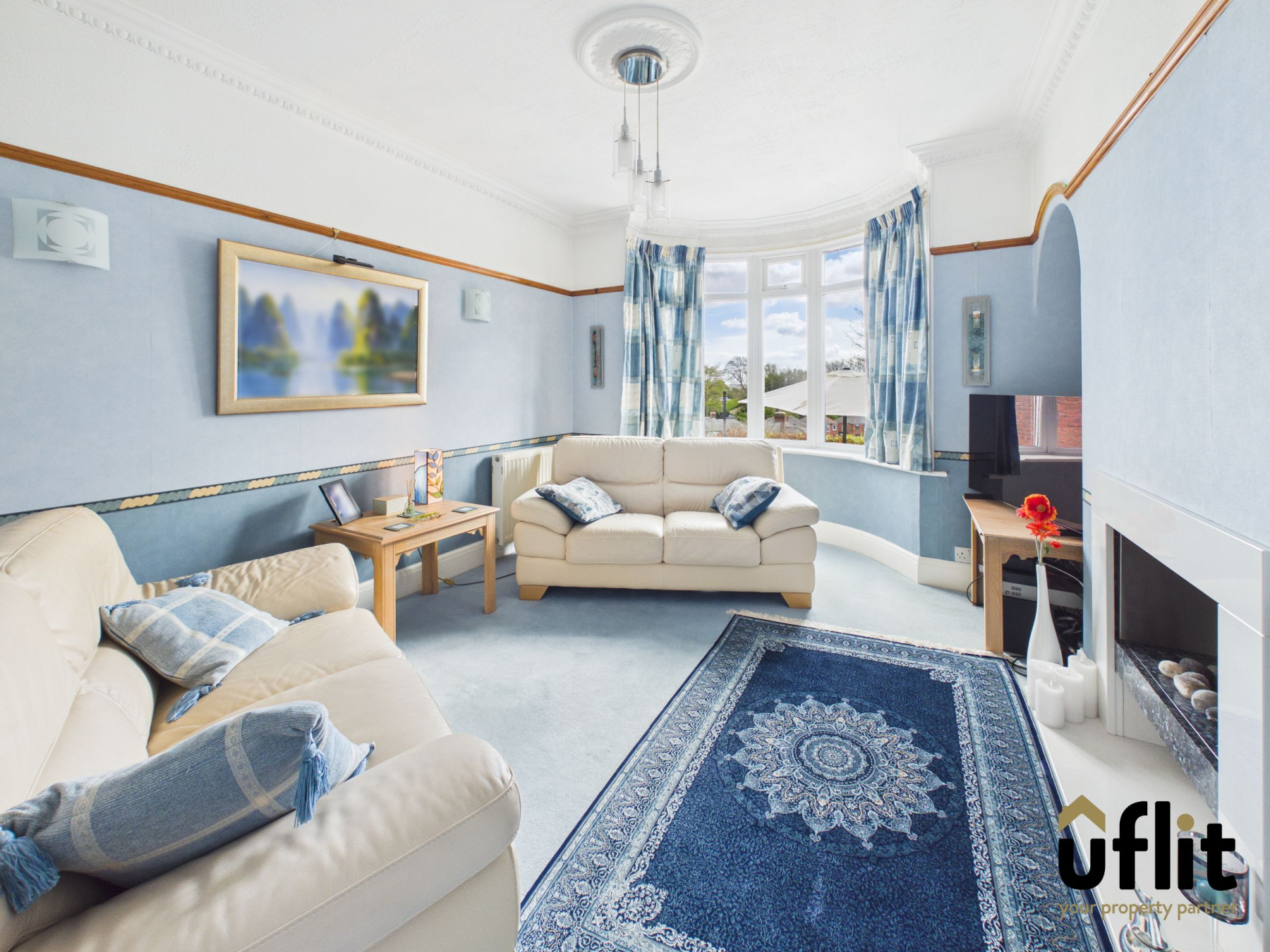 The property boasts multiple reception spaces, including a spacious lounge featuring a striking open marble gas fire with log effect, creating a cosy yet stylish focal point, complemented by a charming bay window overlooking the rear. A separate dining room to the front provides further flexibility, complete with a bay window, elegant marble fireplace and decorative features such as dado rail and coving, adding character and charm.