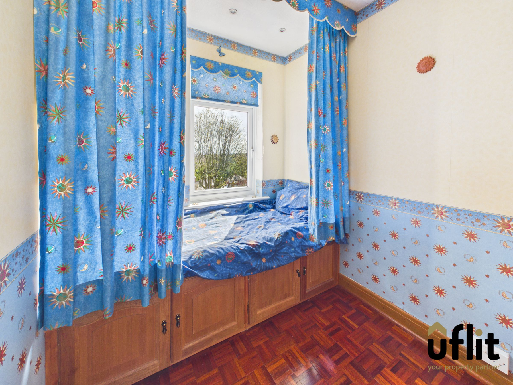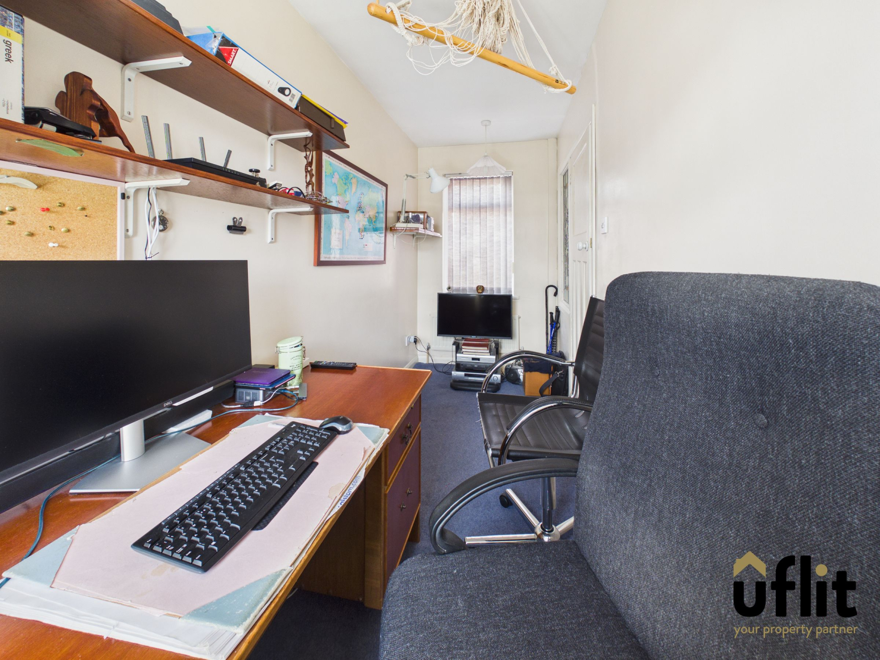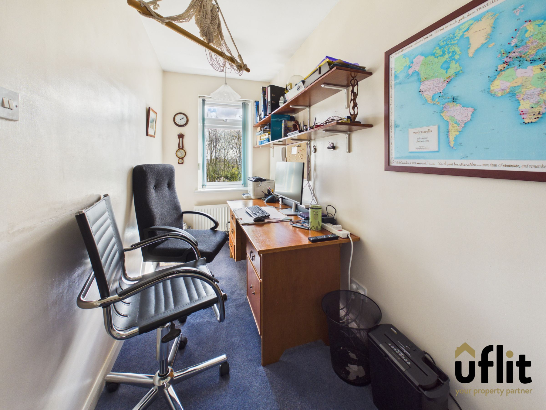 A versatile fourth bedroom with carpet flooring and a radiator. Dual aspect windows to the front and rear allow for plenty of light, making this an ideal bedroom, home office or study space.