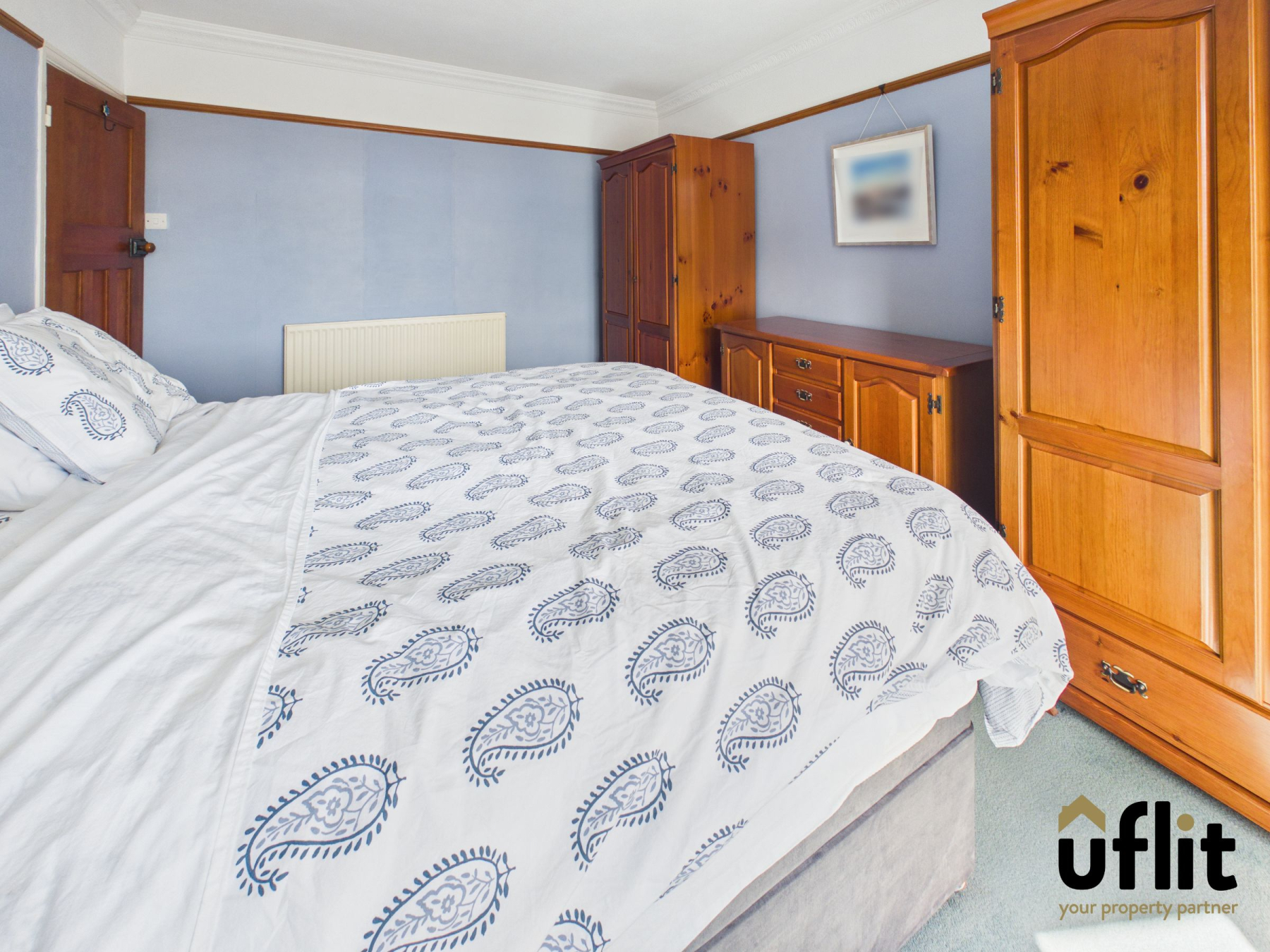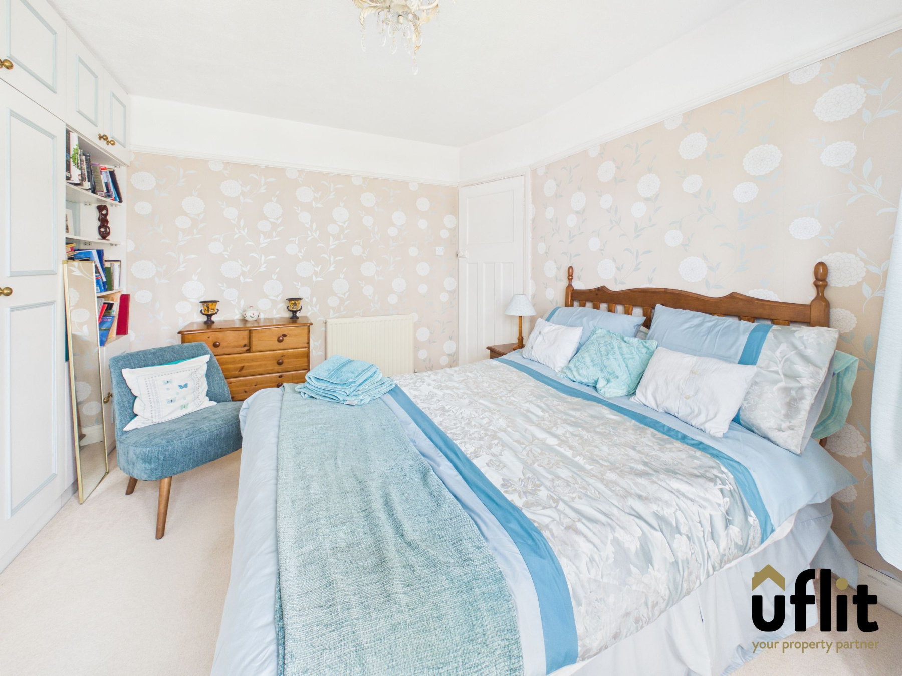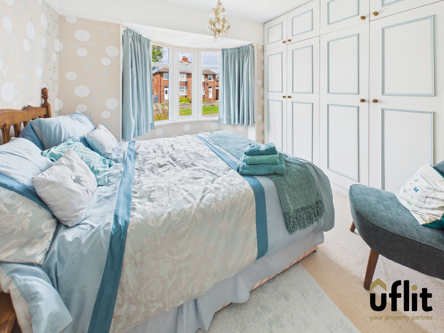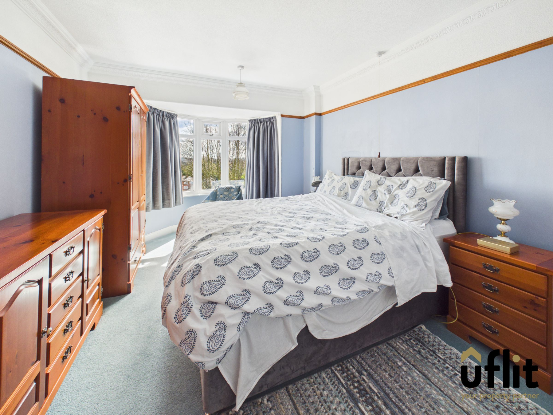 Another well-proportioned double room with carpet flooring and a radiator. This room benefits from fitted wardrobes, providing ample storage, along with a bay window to the front.
