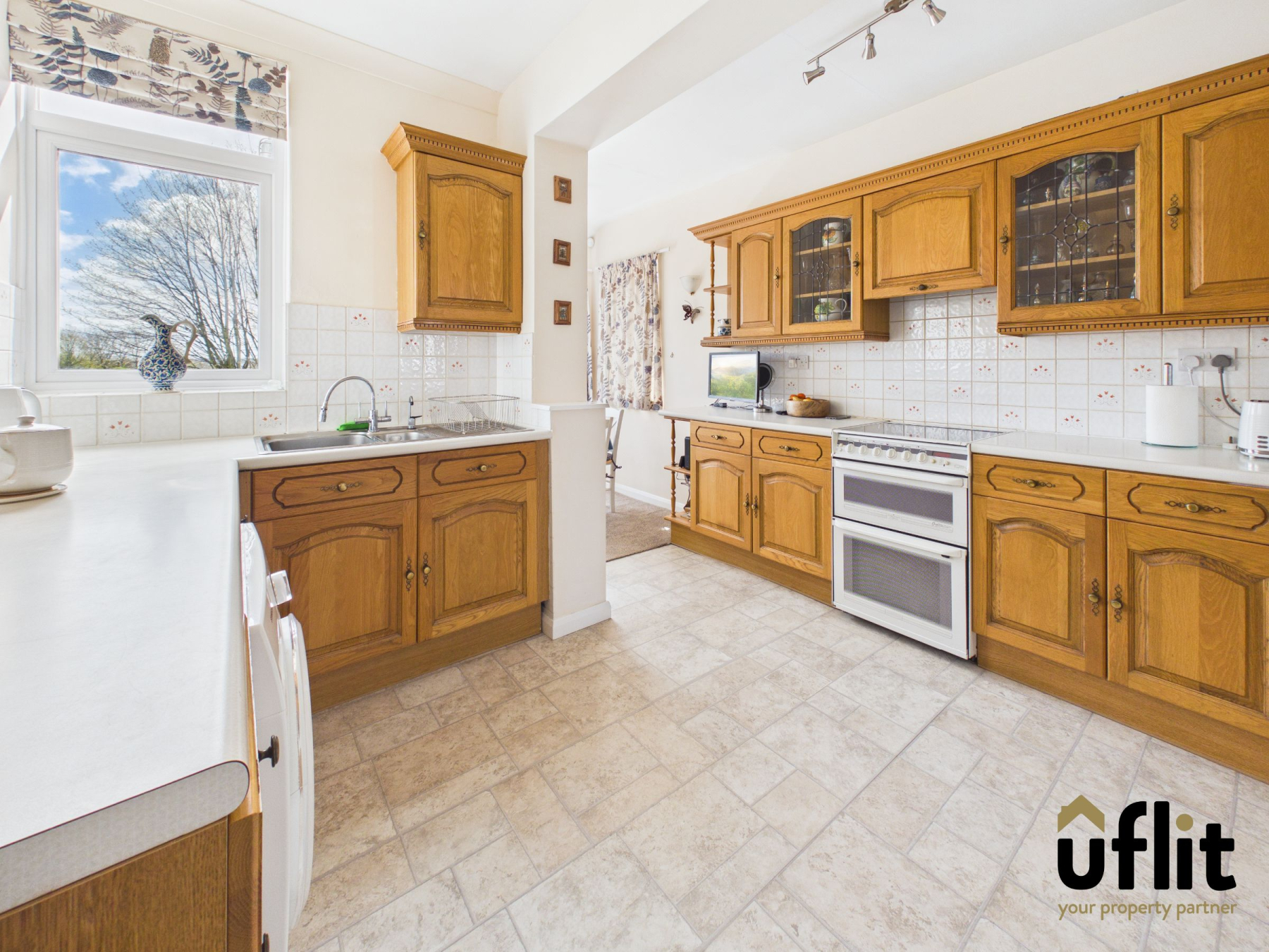 Upon entering, you are welcomed into a bright and sociable kitchen/dining space, forming the heart of the home. This well-appointed area provides ample space for appliances including a washer, fridge freezer and gas oven with hob, while a walk-in pantry offers excellent additional storage. The dining area enjoys pleasant views over the rear garden, making it ideal for both everyday family living and entertaining guests. The property also benefits from an ample number of electrical plug points throughout, enhancing convenience for modern living.