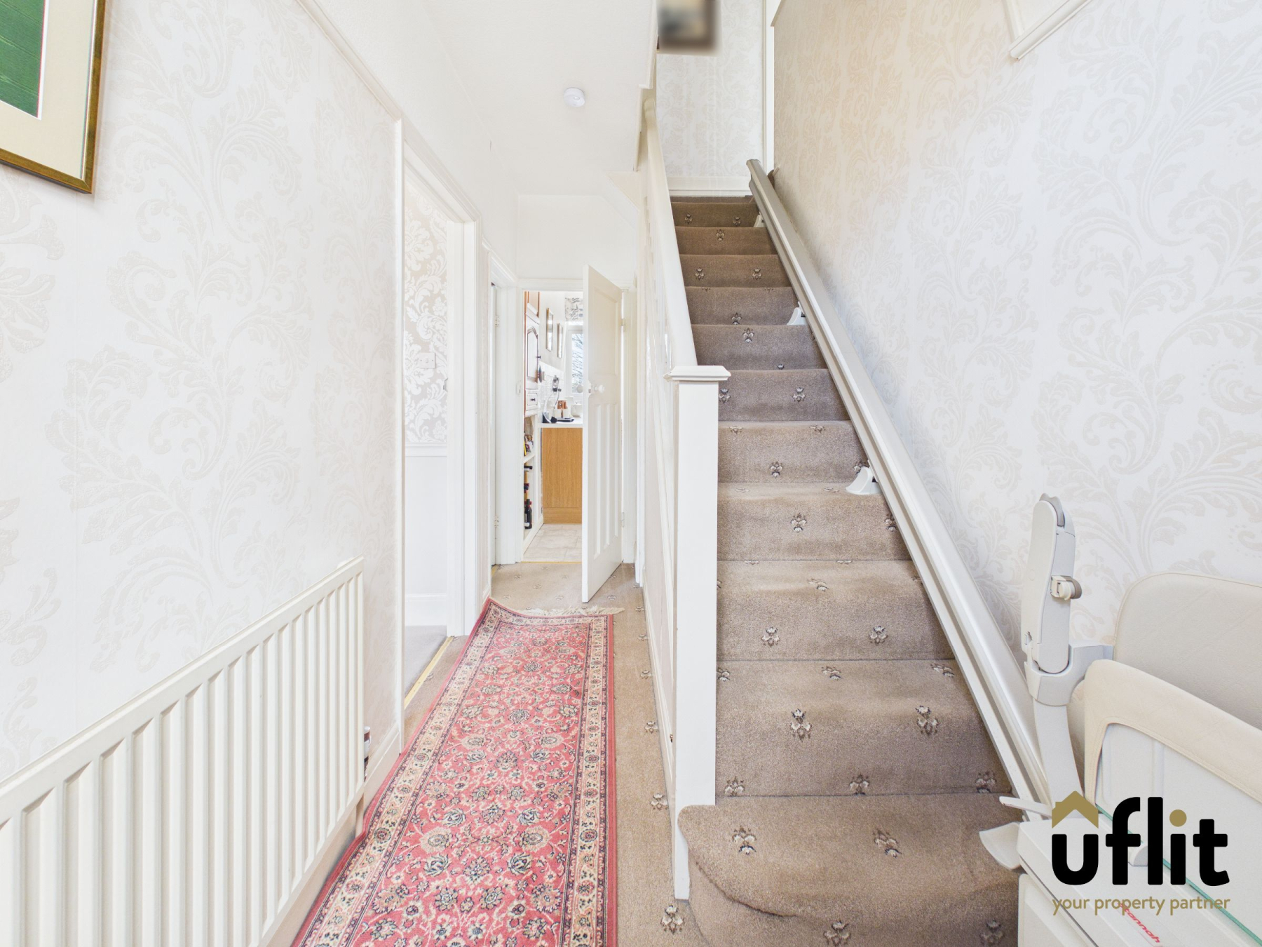 Accessed via the front door, the hallway is finished with carpet flooring and provides access to the dining room, lounge and kitchen, along with stairs rising to the first floor, creating a central and functional flow throughout the ground floor.