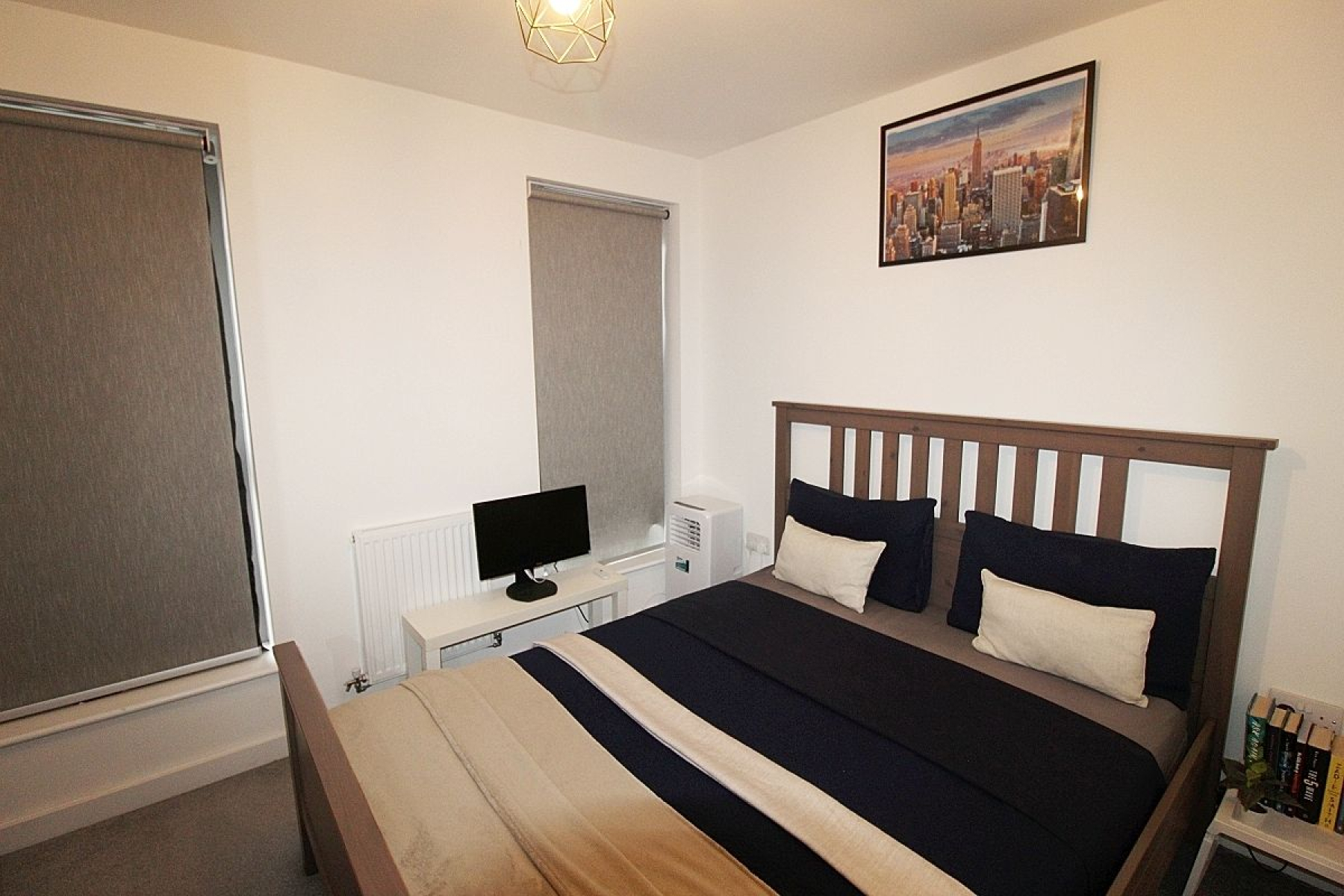 Commanding the second floor is this tastefully appointed double bedroom featuring a front facing glazed window, carpeted flooring and radiator.