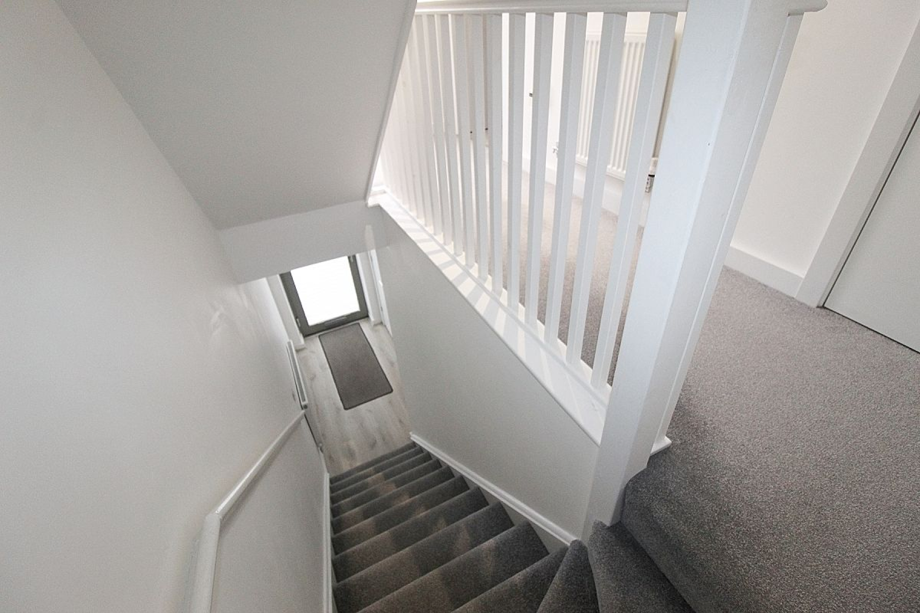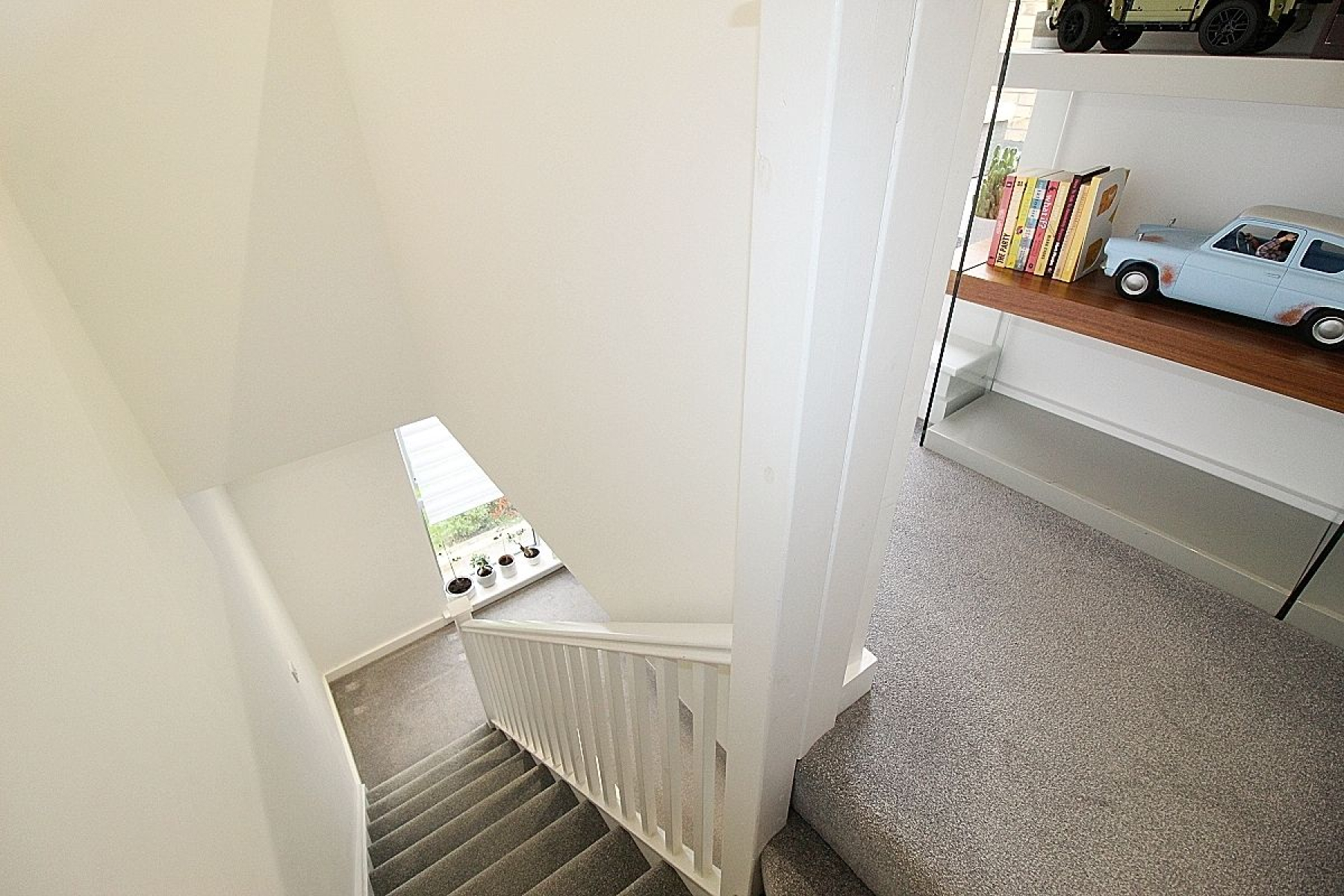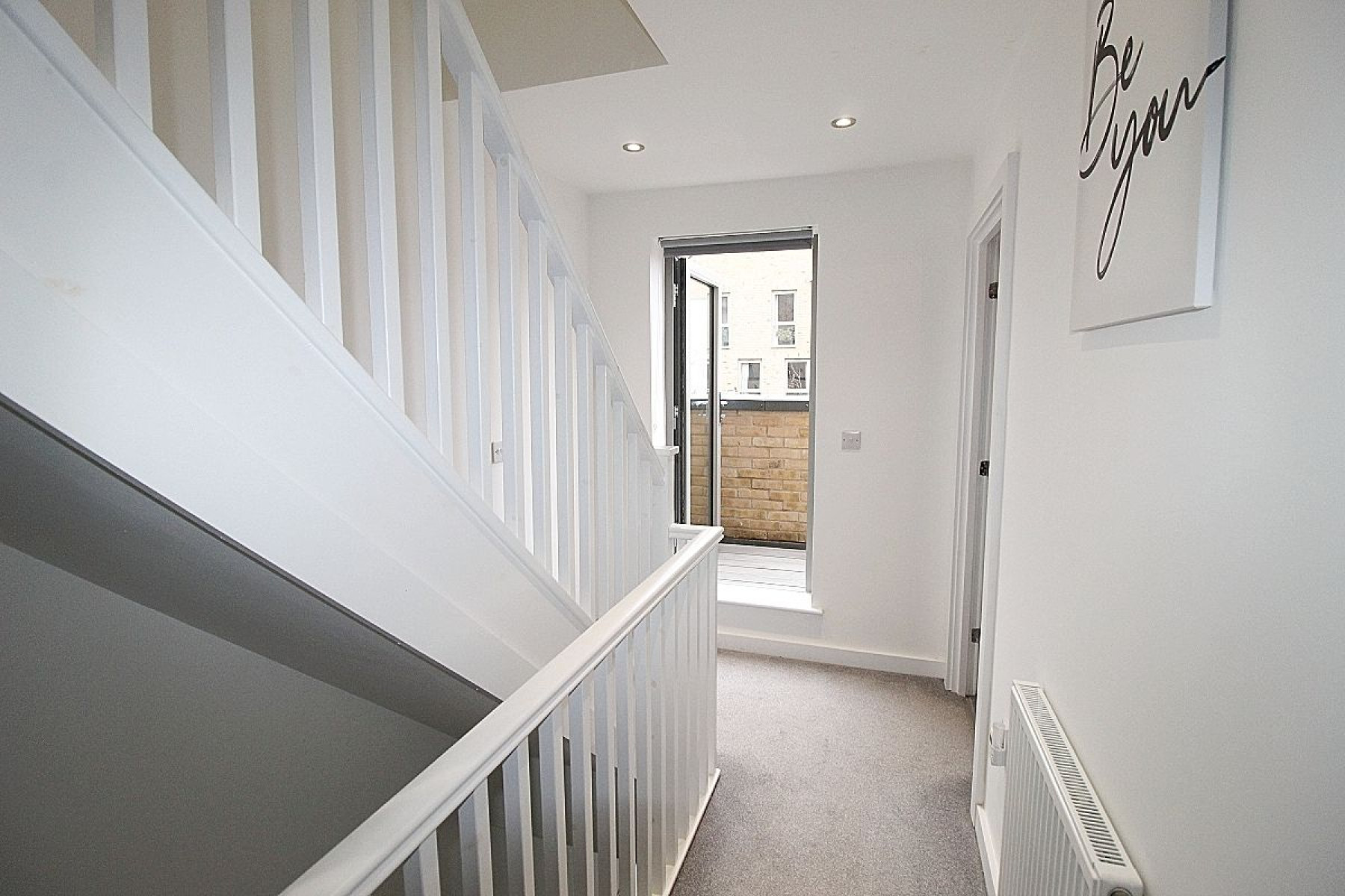 A further carpeted spindled staircase with stairs leading to third floor accommodation, radiator, a front facing glazed window allows light along with spot lighting and doors give access to bedroom two and bathroom.
