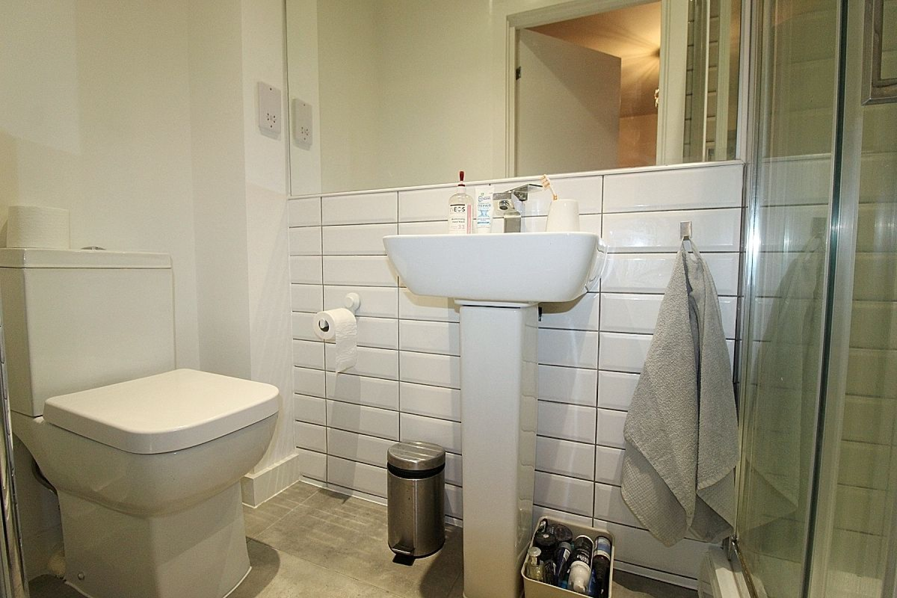 A further modern shower room tastefully appointed, comprising of a built-in shower with tiled back panels, low level wc and wash hand basin. Complimentary partial tiled walls with contrasting tiled flooring, heated towel rail, spot lighting and a large bespoke mirror.