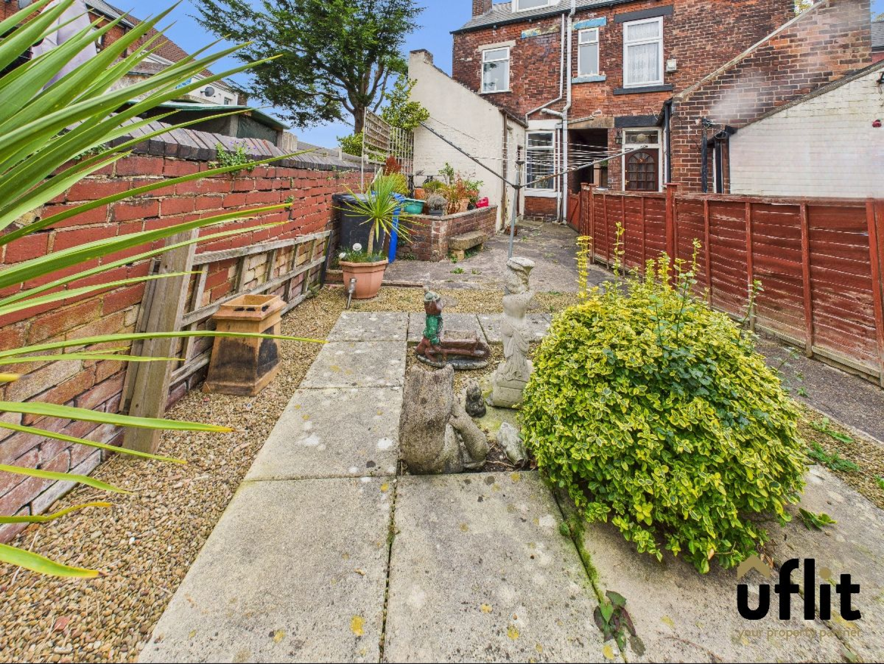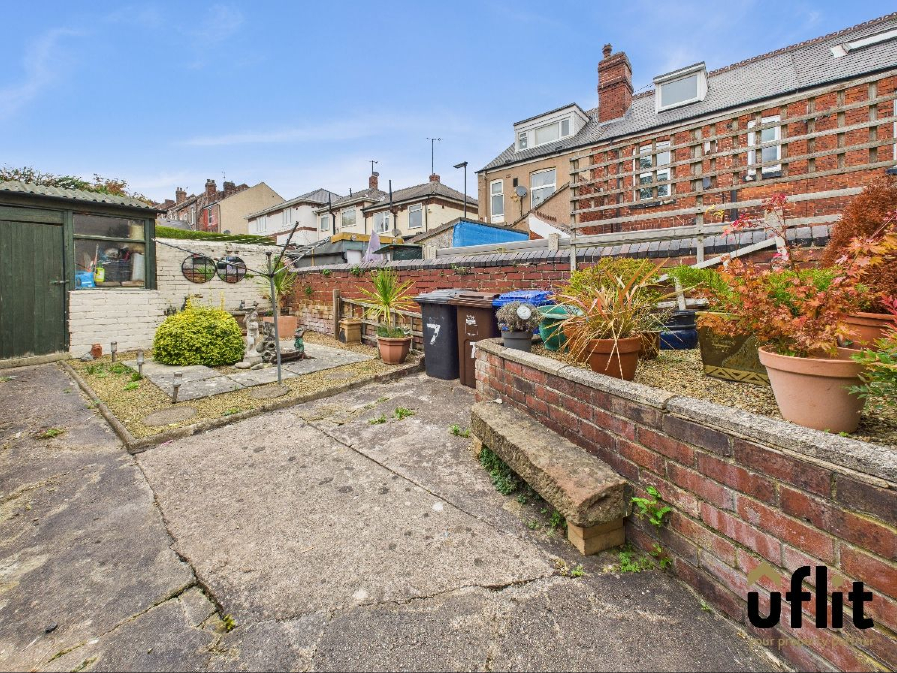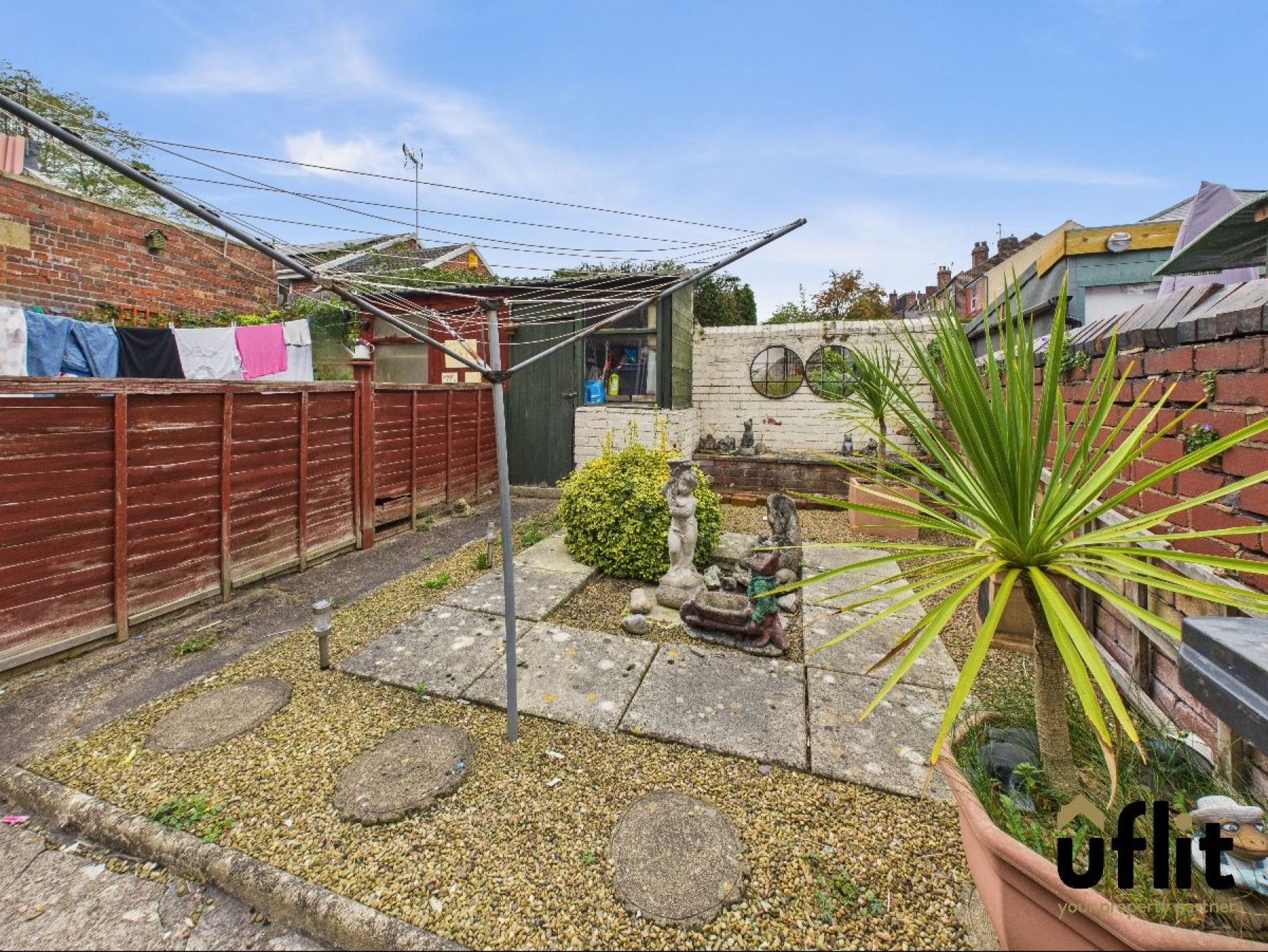 To the front of the property, a low boundary wall encloses a neatly shingled frontage beneath the window, with a passageway running down the side of the house providing access to the rear garden. A gate at the end of the passage opens into a secure and enclosed rear yard, which features a combination of shingled and paved areas, well-maintained planting borders and a raised bed ideal for planters. At the bottom of the garden sits a useful outbuilding, providing additional storage. The entire outdoor space is fully enclosed by a mix of fencing and brick walls, offering both privacy and security.