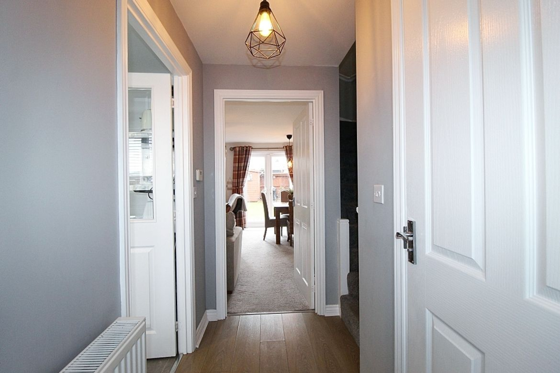 Entering through a composite door with laminate flooring, radiator, doors giving access to the wc, kitchen, lounge/dining area and carpeted stairs to first floor accommodation.