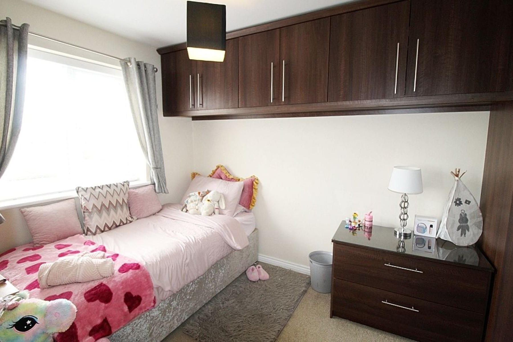 With a rear facing upvc window, radiator, carpeted flooring and a range of modern fitted wardrobes and furniture.
