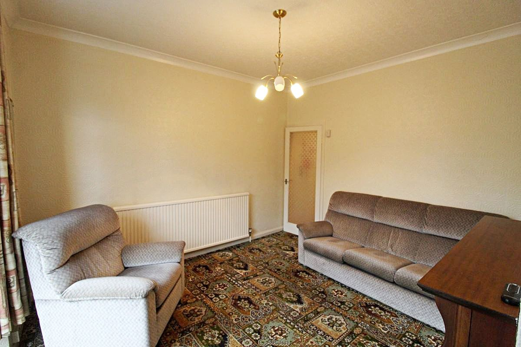 A spacious second living area with rear-facing window, gas fire set in a marble surround and hearth, carpet, radiator and wood cladding to one wall. Doors lead to the cellar and lounge, making it an ideal family or dining space.