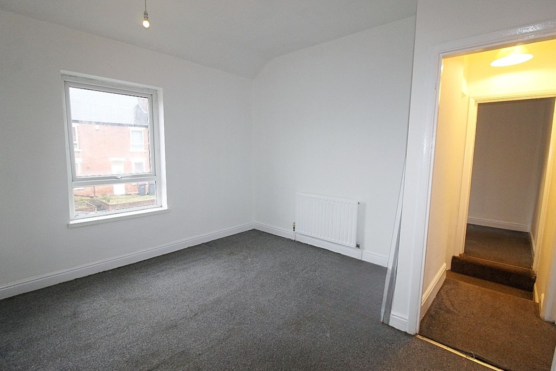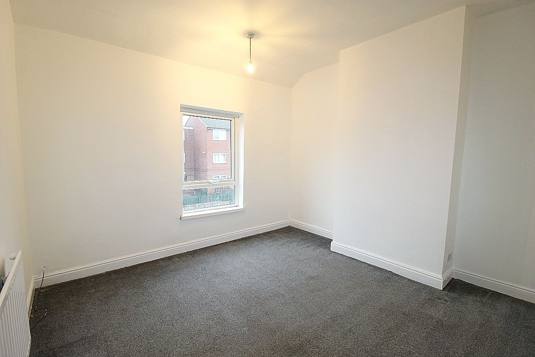 Master bedroom w: 3.7m x l: 3.7m (w: 12' 2" x l: 12' 2") A spacious double bedroom with carpeted flooring, a front-facing window and radiator.