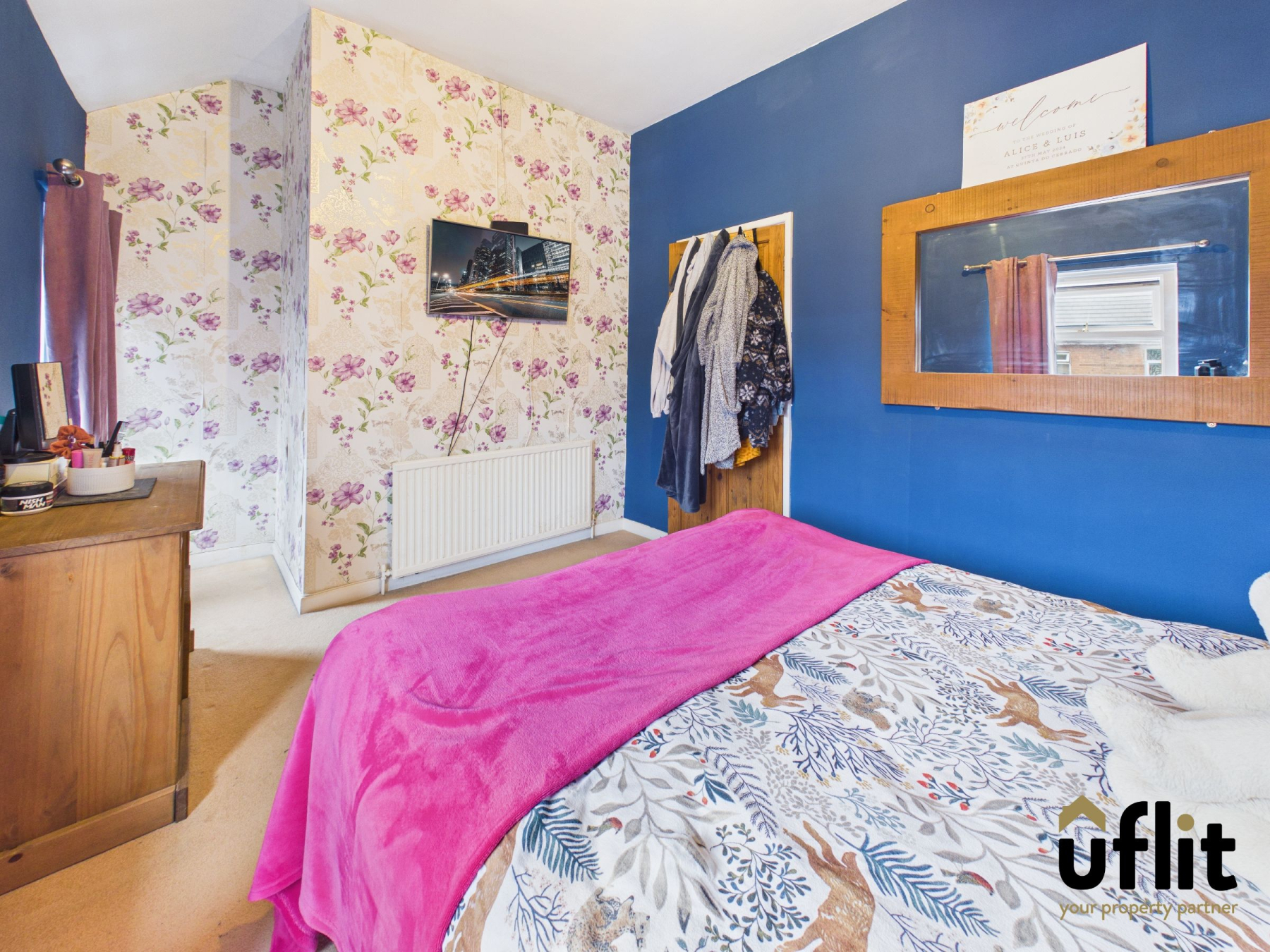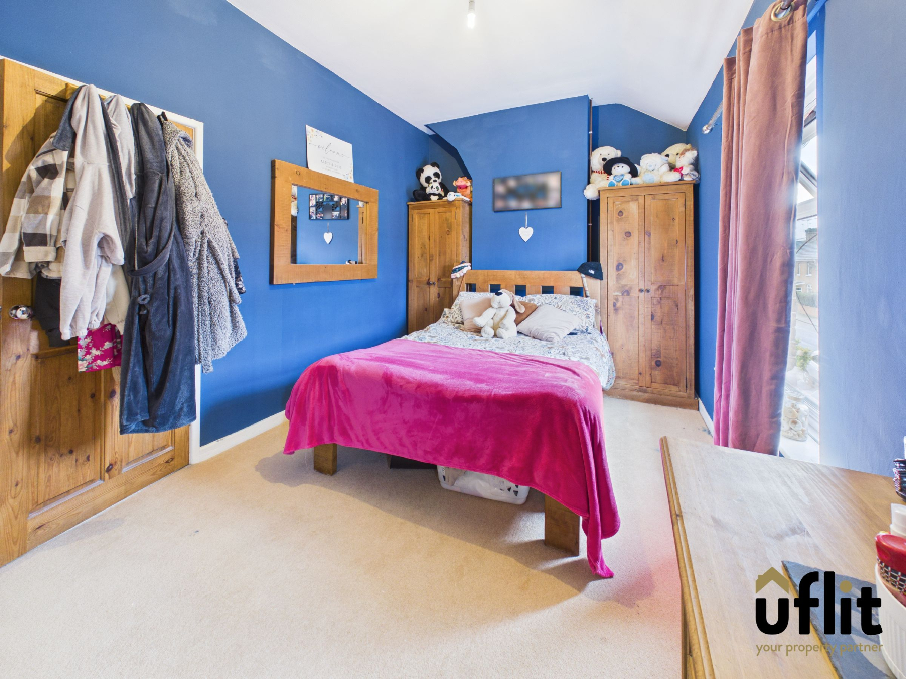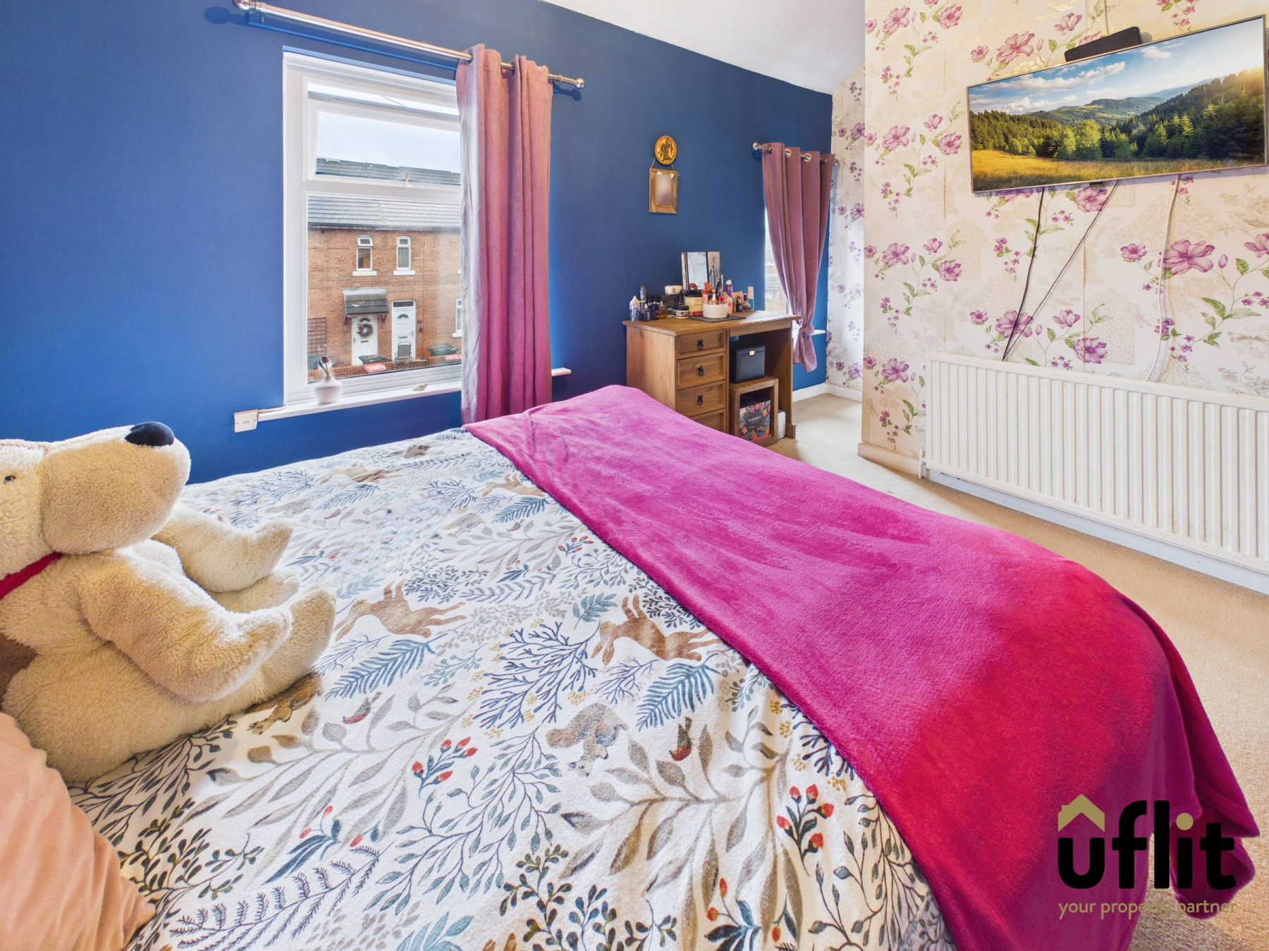A large double bedroom situated to the front of the home, with two front-facing windows providing a bright, airy feel. Fitted carpet underfoot ensures comfort and a radiator provides heating.