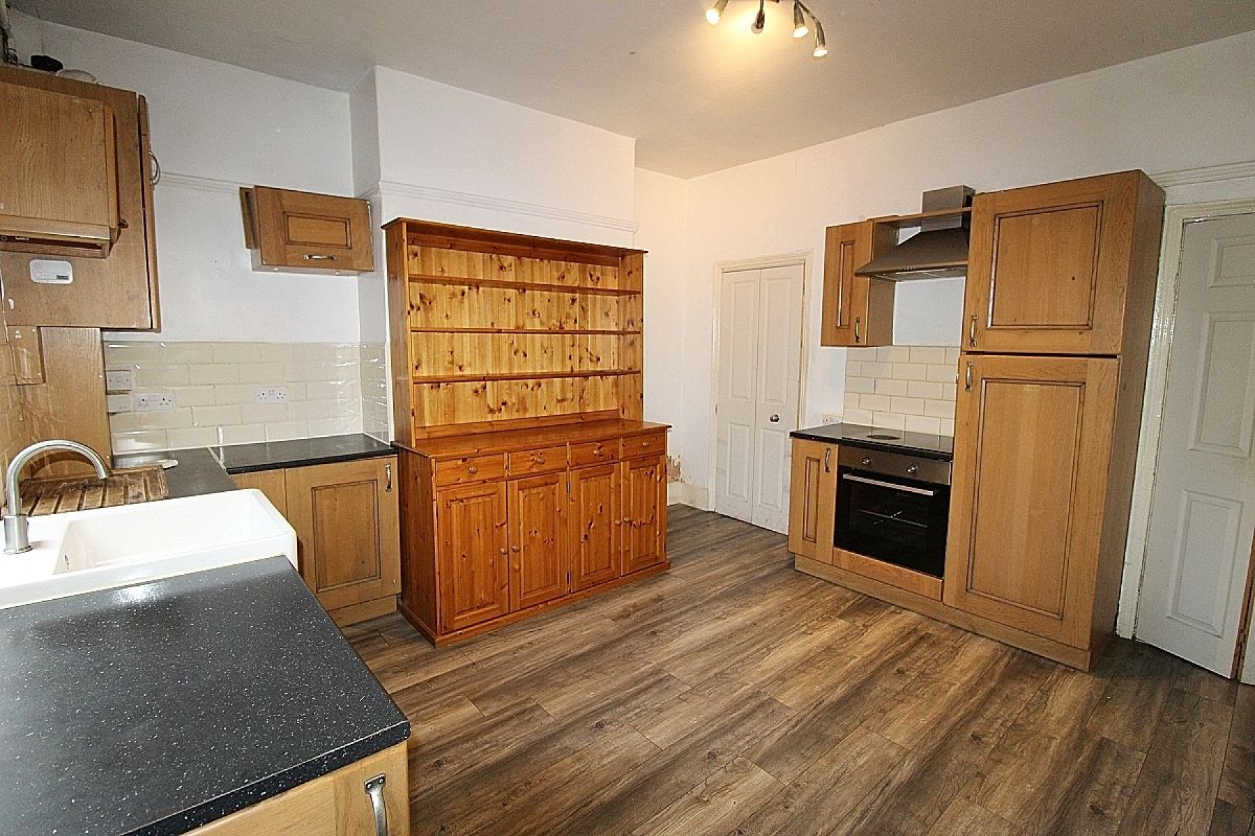 Breakfast kitchen w: 3.9m x l: 3.9m (w: 12' 10" x l: 12' 10") Comprising of a range of wall and base units with complimentary work surface areas, large ceramic sink and tiled back panels. Appliances to include a built in oven, hob, extractor fan above and plumbing for further utilities. A rear facing upvc window along with a glazed solid wood door to the garden allows light to flow through whilst a radiator adds warmth, laminate flooring flows throughout and a door gives access to the cellar.