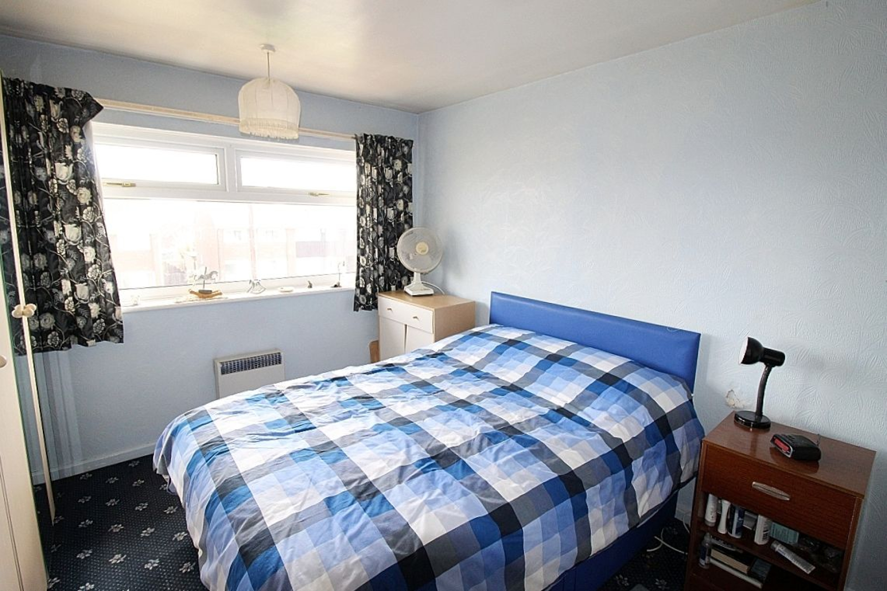 A further double bedroom with a built in wardrobe, carpeted flooring, radiator and a rear facing upvc window.