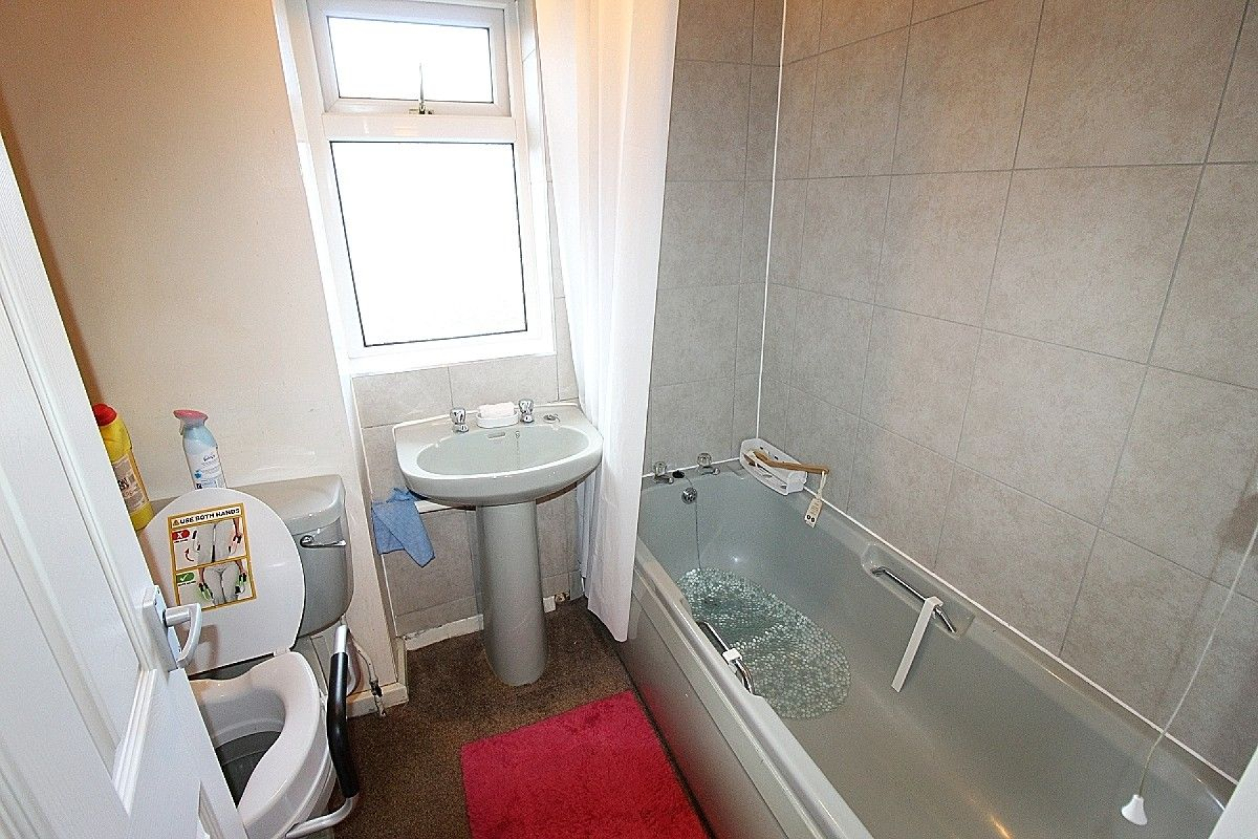 Comprising of a panelled bath with over head shower, wash hand basin and wc. Partially tiled walls and a rear facing upvc window.